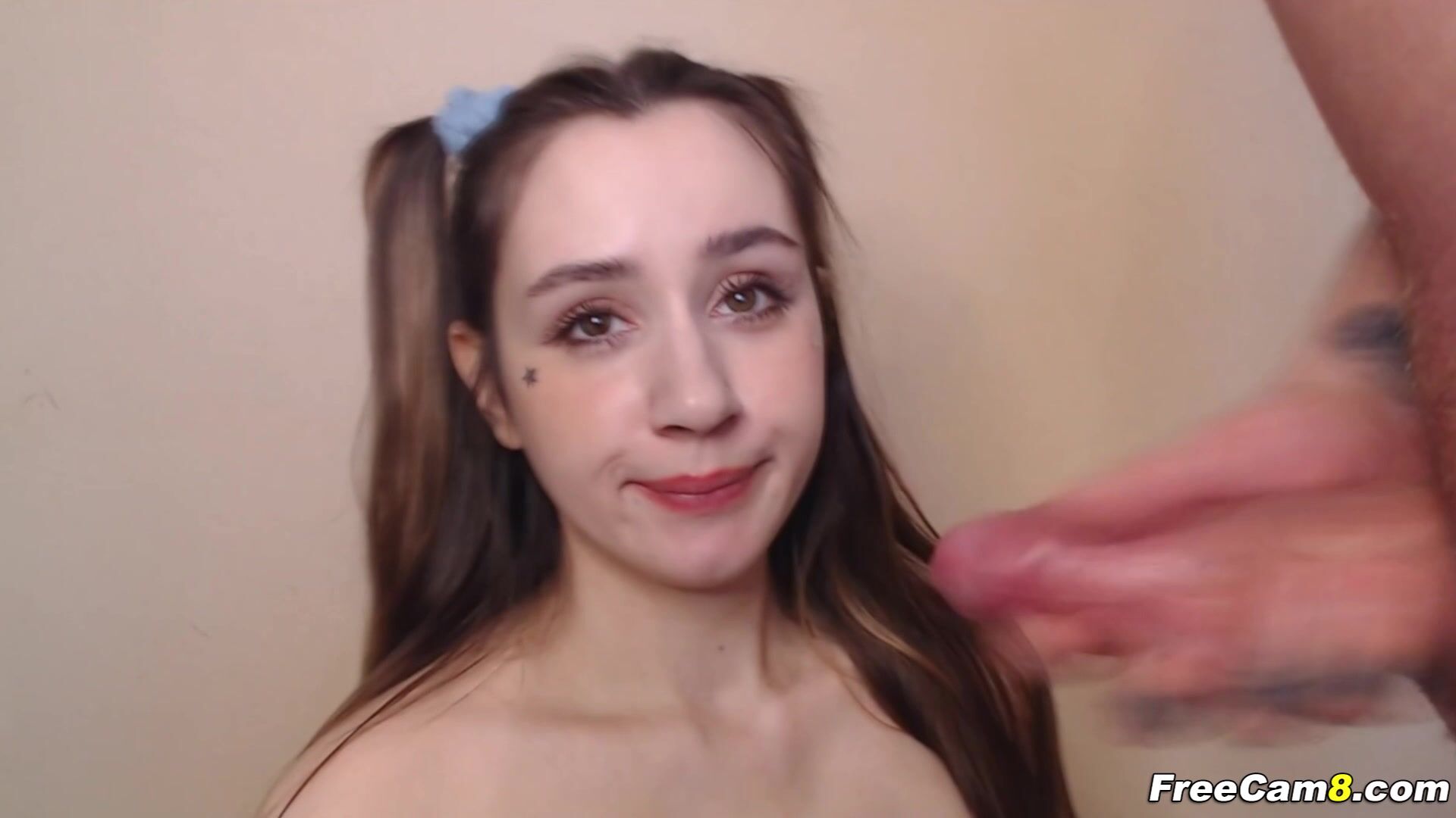 Brunette College Slut Takes Huge Dick in Her Tight Mouth
