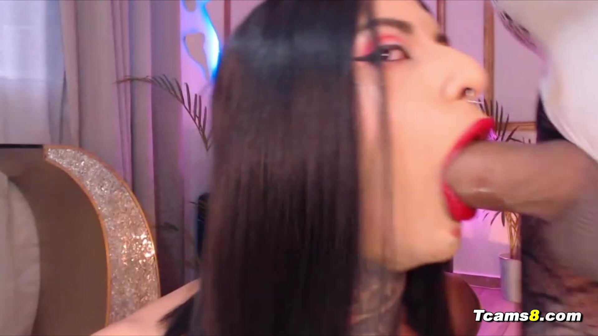 This ravishing tranny looks hungry for a cock and deepthroated her companion with no hesitations. See her open her mouth wide so she can fit and deepthroat that big cock. These two are sizzling hot as they keep on stroking their big dicks and prods you with one of their hot tranny asses. They will trigger your desire so be prepared for a gigantic boner. See these hot shemales pleasure each other and see how hot this hot tgirl giving a wet and sloppy blowjob.