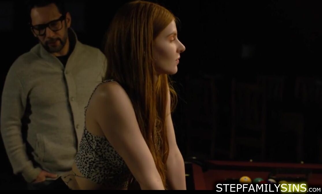College stepdaughter Jane Rogers is making up for her stepdad after breaking the curfew.The guy is kissing and sucking her tits while masturbating her hairy pussy.The redhead babe is deepthroating his big cock then letting him fuck her tight cunt