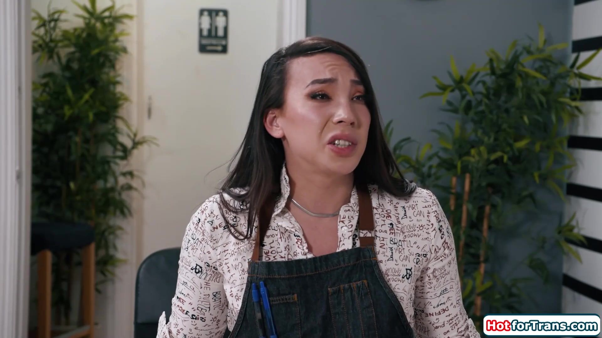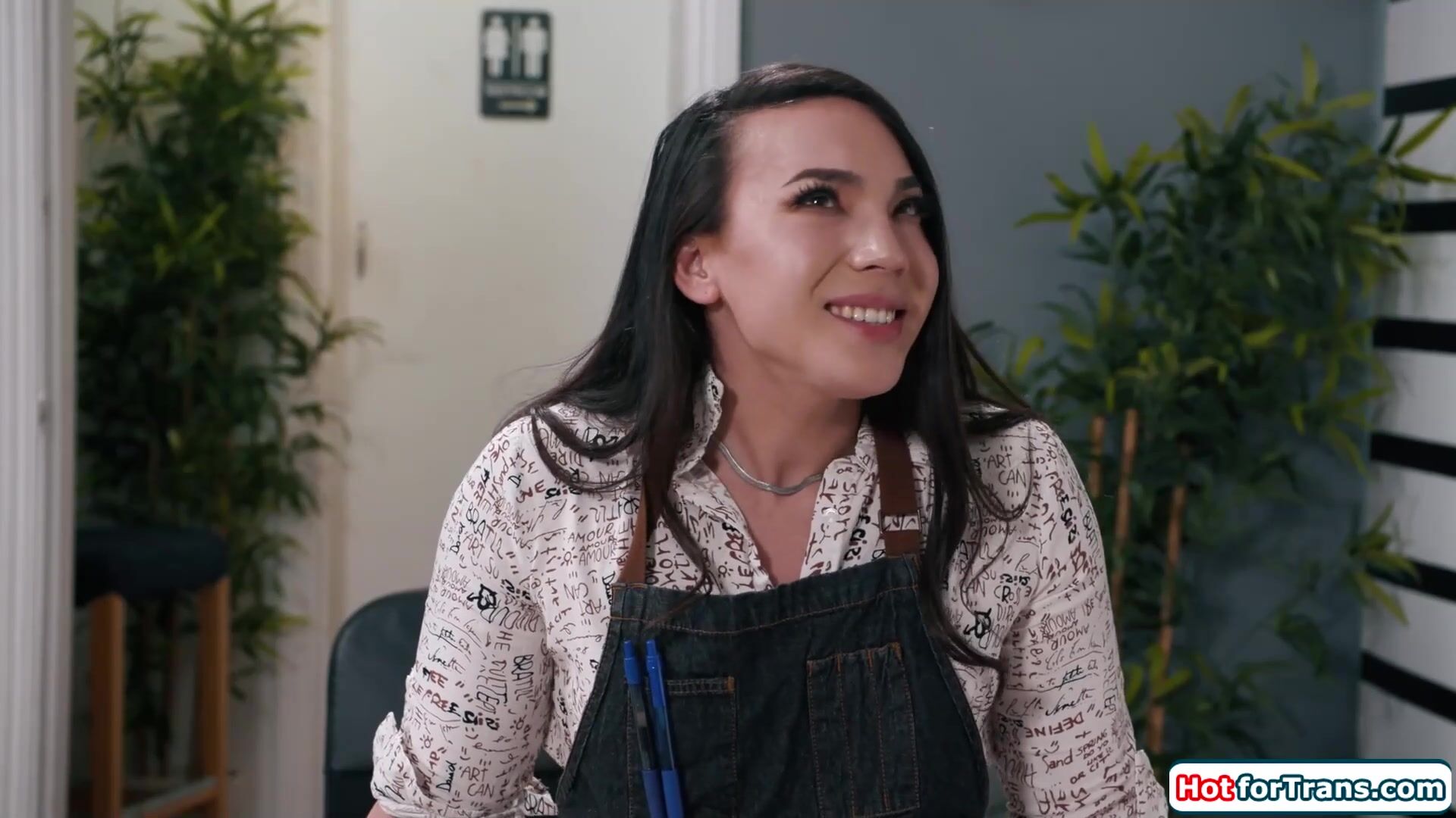 Since its his last time delivering a package to his trans client Kasey Kei he finally gives in.The asian shemale deepthroats his cock and gets her own tranny dick sucked.The small tits brunette ts enjoys being rimmed and bareback anal rides