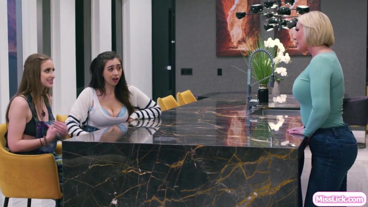 Laney Grey and her stepsis Chloe Surreal take over the house and their new stepmom Mellanie Monroe.They start caressing and sucking her big tits.The busty milf gives in as her teen stepdaughters taking turns licking and fingering her hairy pussy