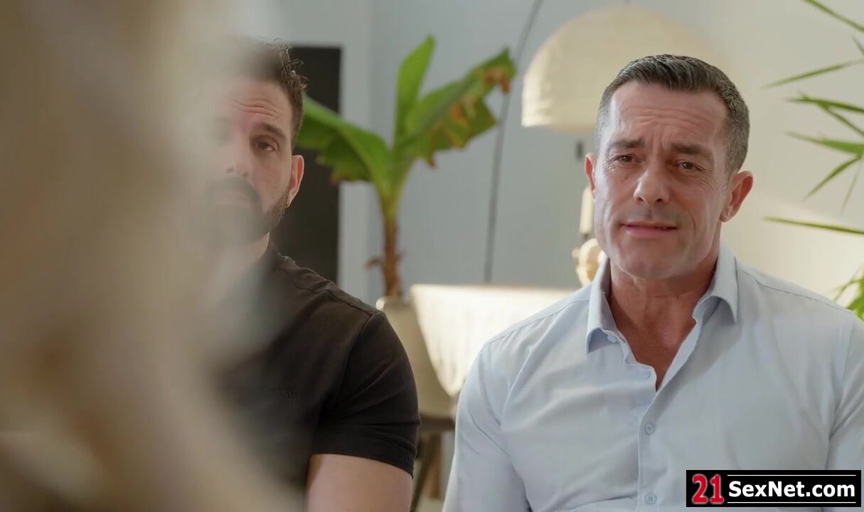 Shalina Devine conducts sex therapy.After hearing her two male clients problems,she asks them to get naked.The big tits milf starts giving them blowjob.Then she removes her lingerie and lets them fuck her at once,double penetrating her ass and pussy