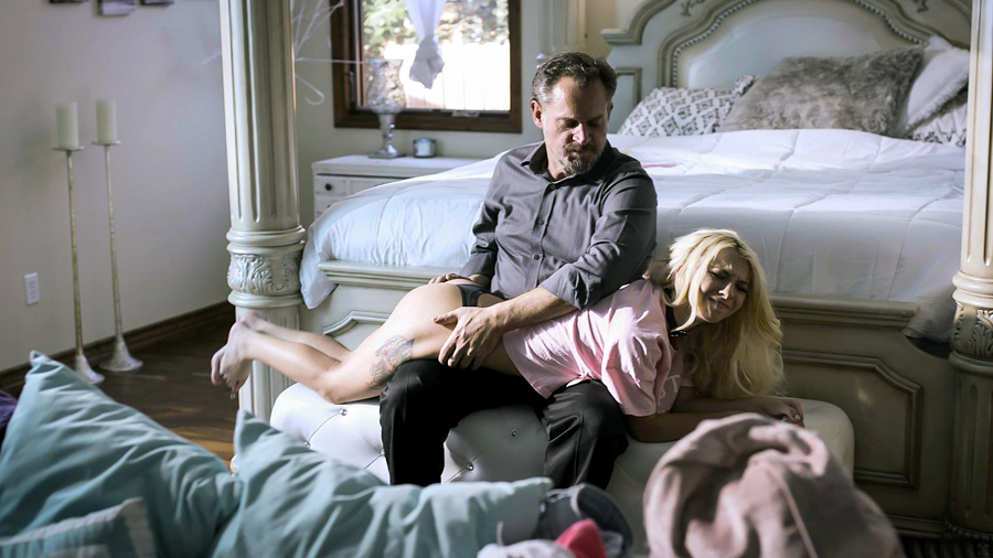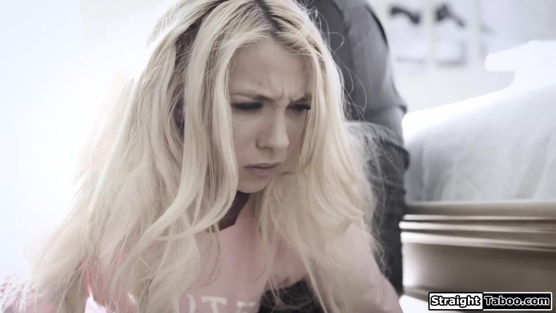 My teen stepdaughter Kenzie Reeves felt a got hard when I spanked her and of course she was shocked.But with the leverage I had the petite blonde had no choice than let me as her stepdad lick her shaved pussy.I facefucked and banged her as well