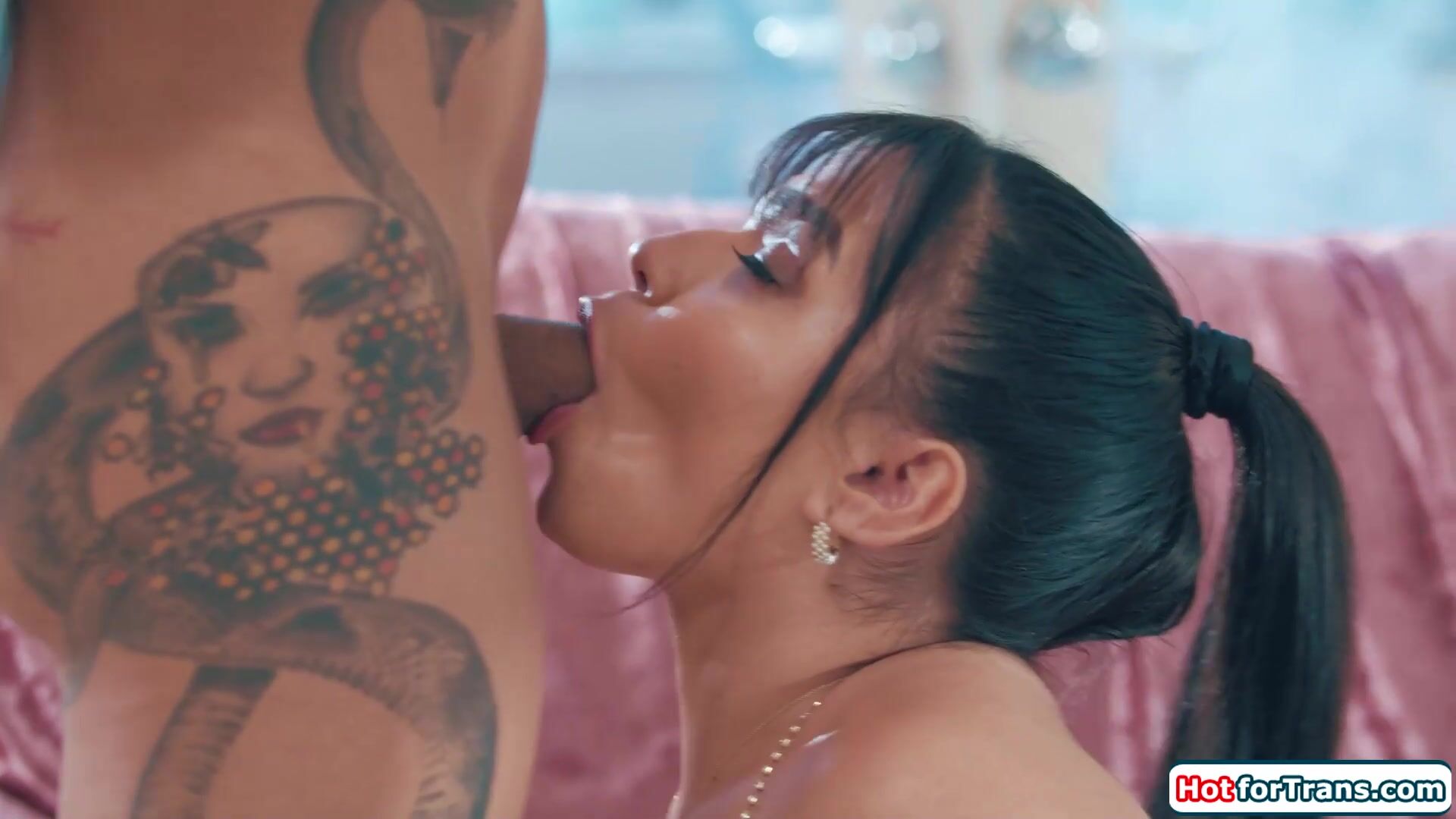 Busty latin tgirl photographer Eva Maxim is having feelings for her nude model Summer Col.The big tits shemale kisses the brunette and gets her boobs sucked.After Summer deepthroated the trannys dick shes pussy licked and fucked by the tattooed trans