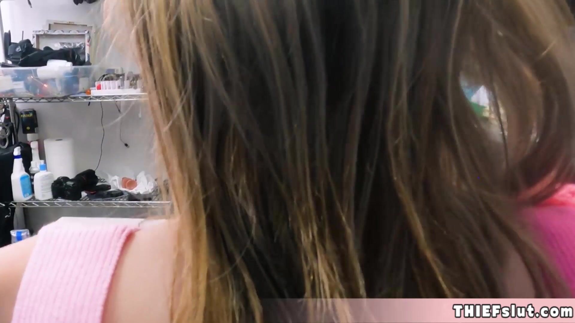 Petite Coco Lovelock caught stealing and now its time for her tiny mini pussy to get destroyed by the mall cop