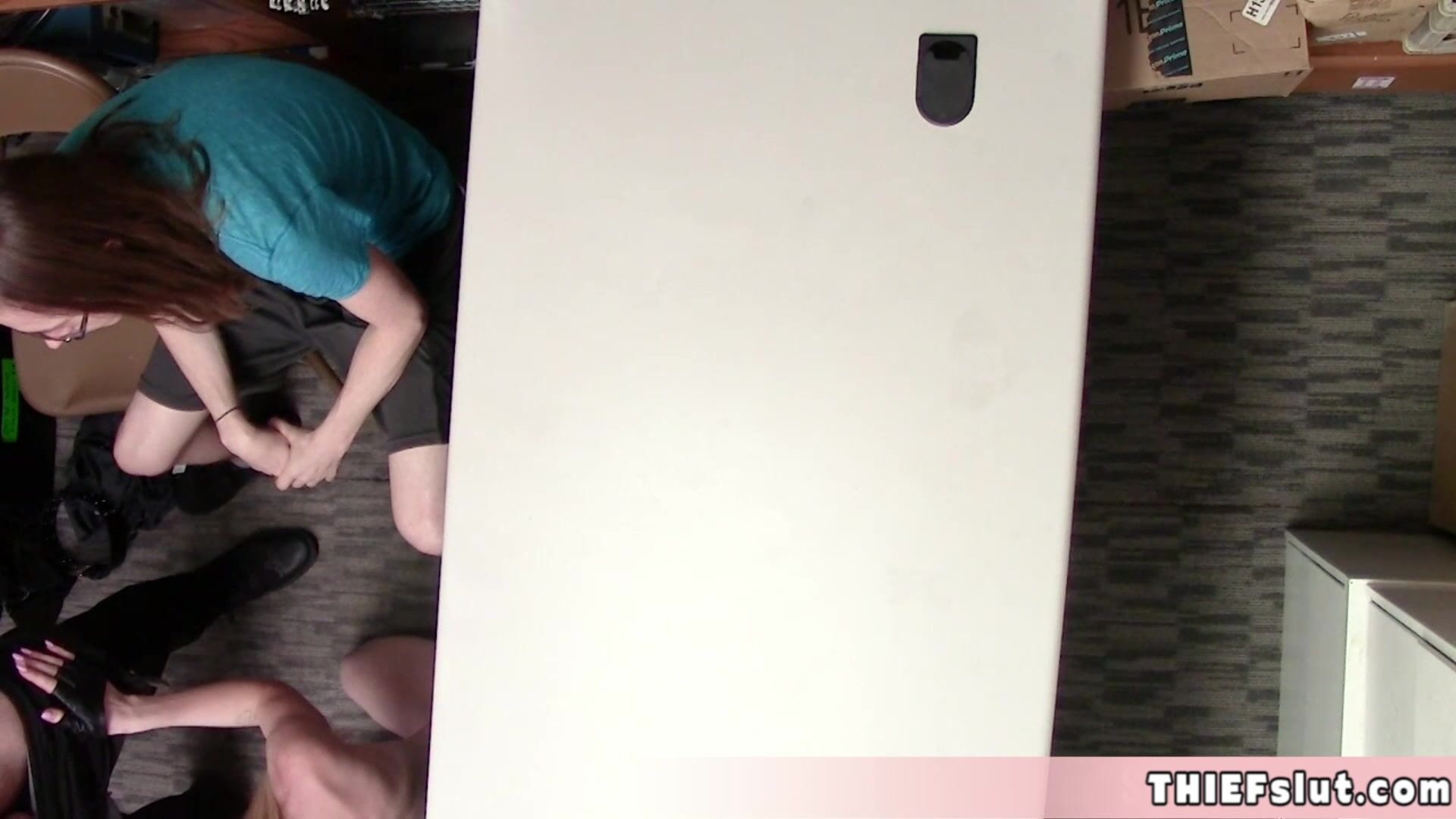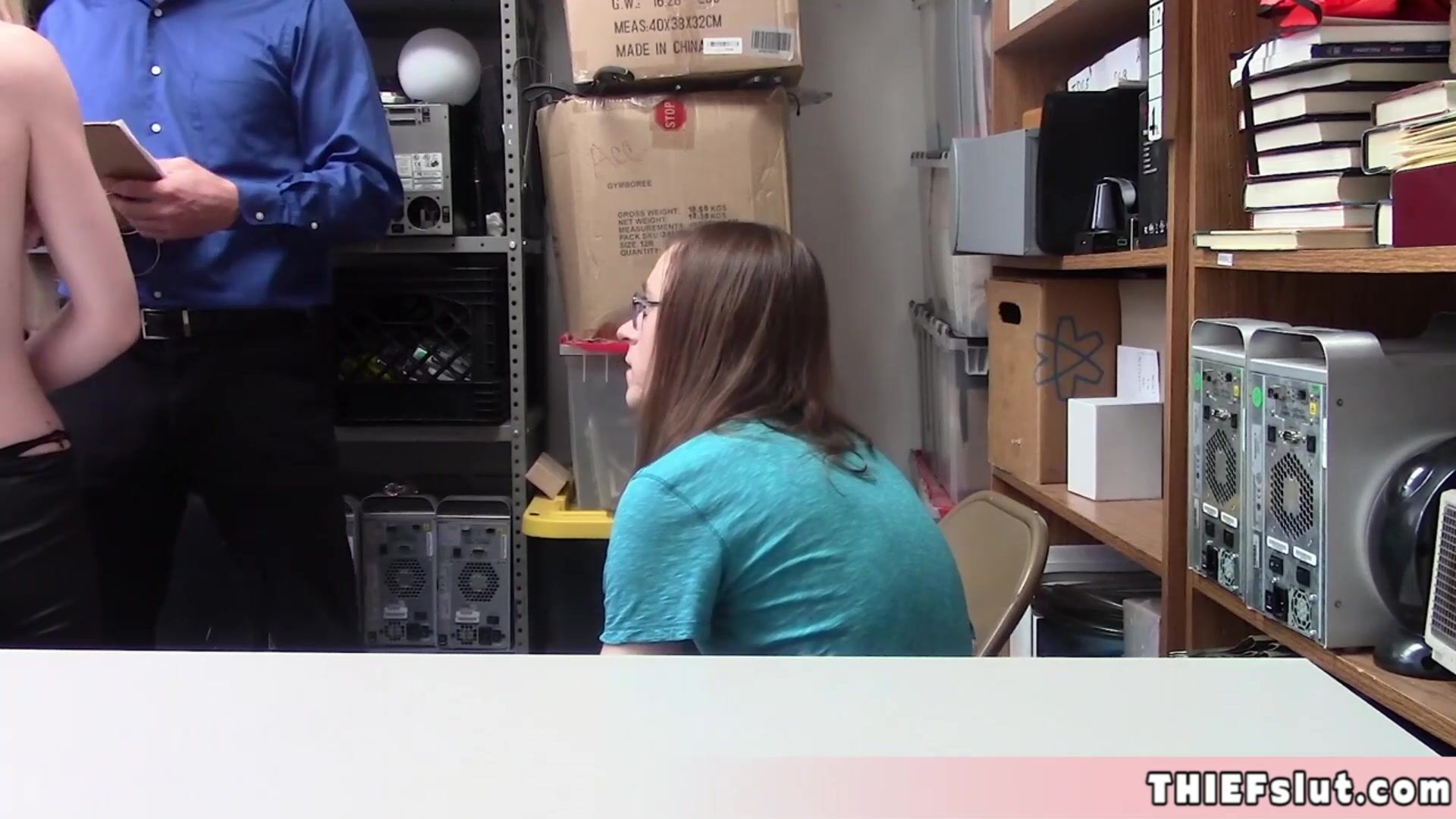 Skinny blonde thief fucked in front of her BF because this is how we handle these kind of situation in this mall