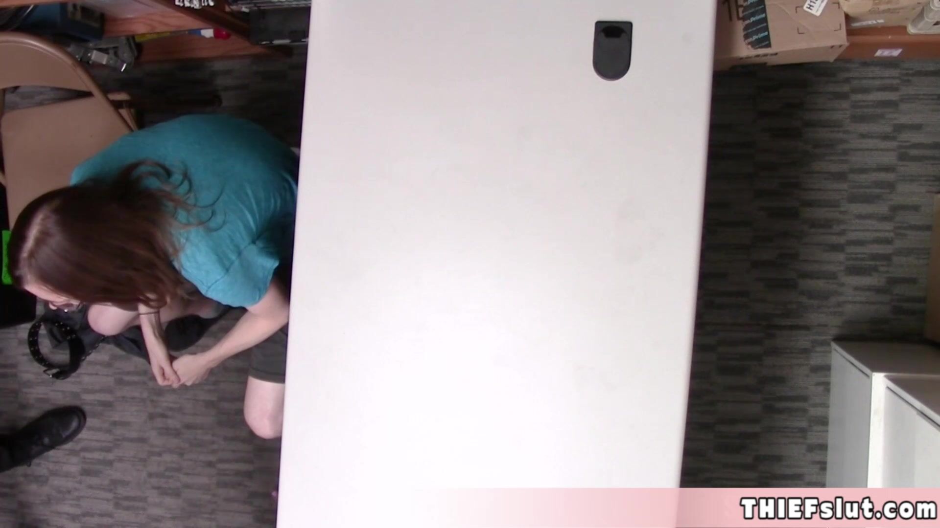 Skinny thief fucked in front of her BF