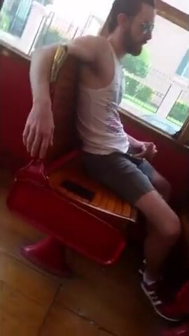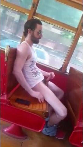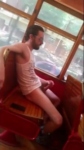 A well-endowed man couldn't resist the urge to stroke his big cock while riding the bus. He tries to hide his amateur public masturbation, but the bulge in his pants gives him away in this outdoor adventure.