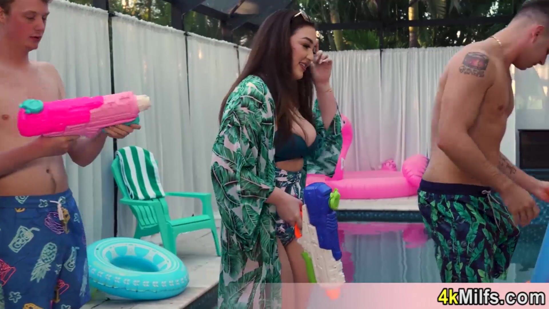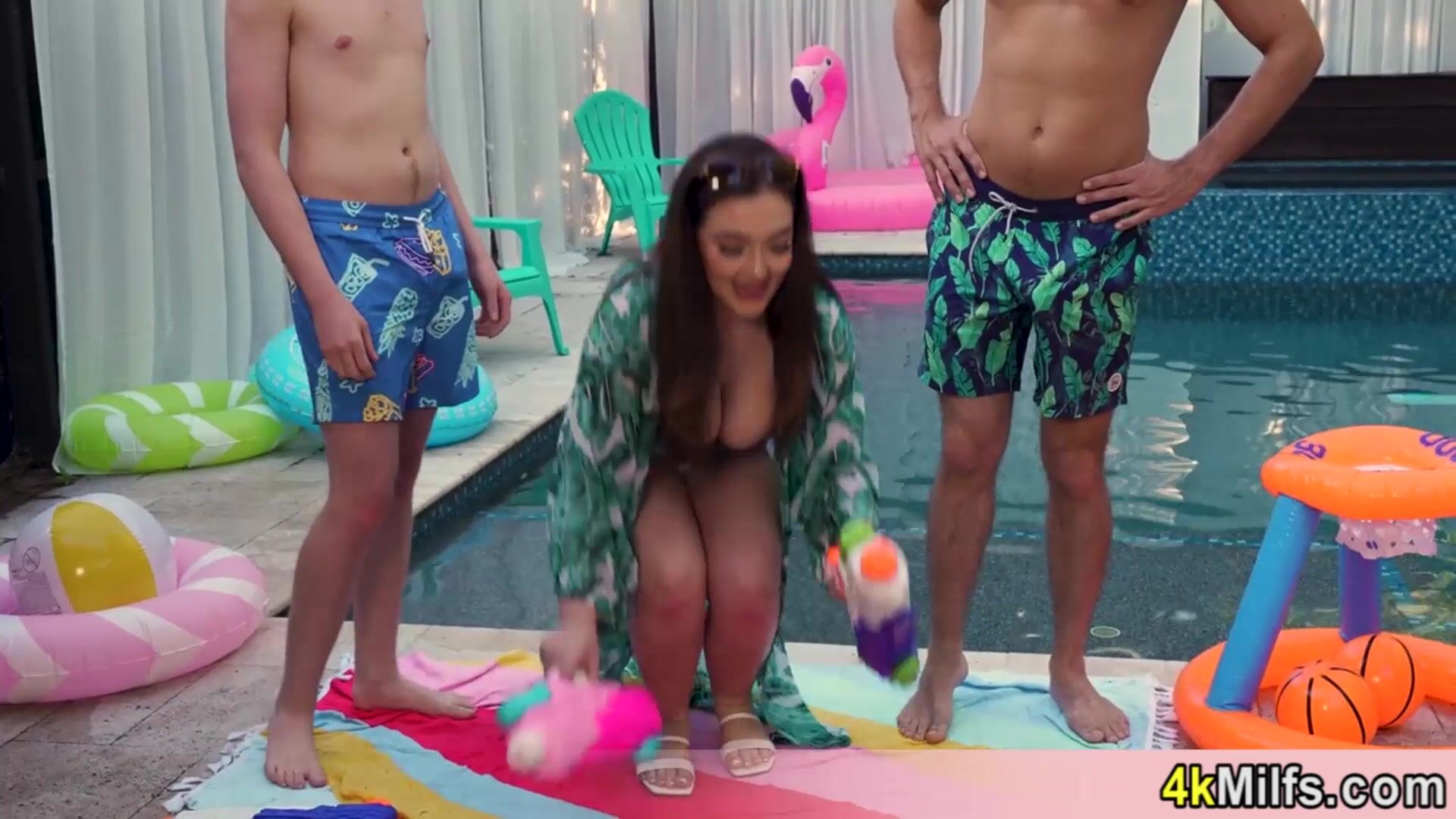 Busty stepmom loves the new pool so we decided to give her the orgasm of her life via double fuck