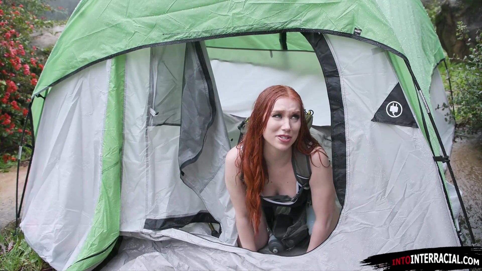 Big tits Madison Morgan camps on private property.The owner gets invited in her tent and lets the busty petite redhead deepthroats his big black cock.The sexy babe rides his bbc and after a pussy to mouth blowjob she gets fingered while banged
