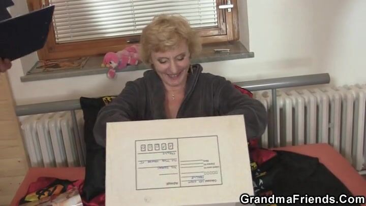 Slender Blonde Granny Threesome