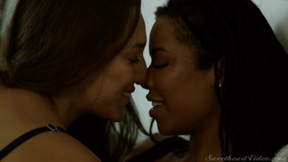 Ebony Lesbian Licks Brunette Pussy
