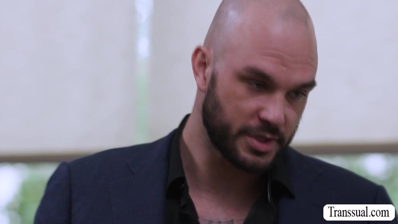 Petite shemale secretary gets barebacked by her bald boss