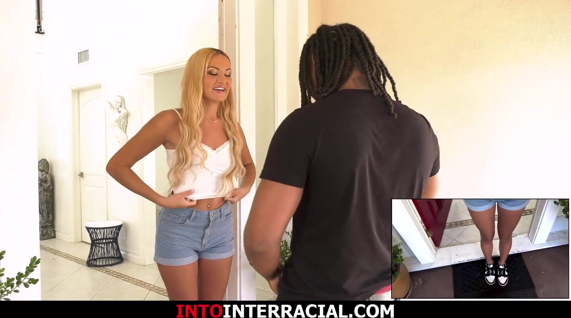 Do all delivery guys flip out their cock ifo their clients?Mila Monet is willing to show him her titties if he takes out his big black cock for her.The small tits blonde sucks his bbc while he films her and he licks and bangs the teens shaved pussy