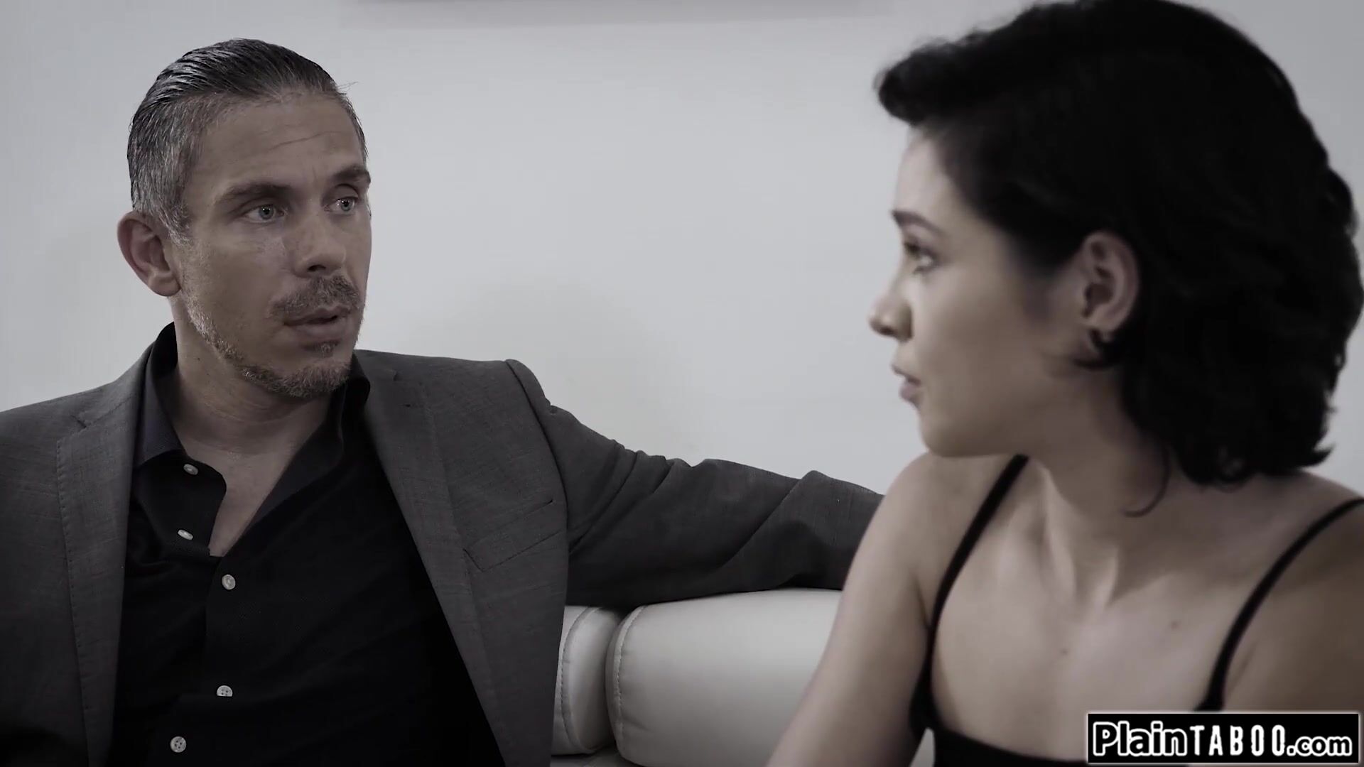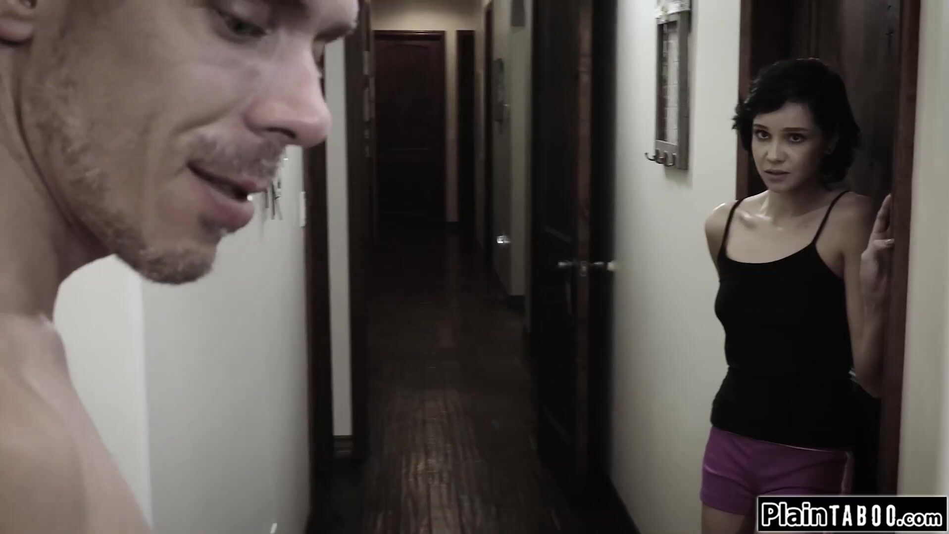 Petite teen babysitter Cadey Mercury is shocked when she walks in on her boss jerking off.He will triple her rate is shes willing to pleasure him.He pulls her nipples while she wanks his big cock.The small tits virgin sucks cock and is pussy fucked