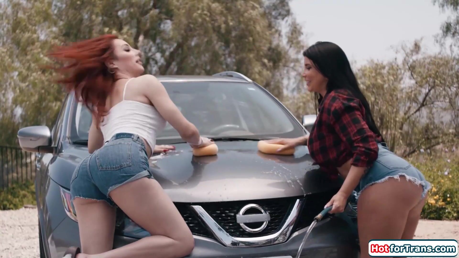Busty tgirl Ariel Demure got hard and horny from a sexy carwash with big tits gf Romi Rain.Inside the shemale receives a deepthroat blowjob.The redhead latina trans licks the tattooed milfs shaved pussy and bangs her with her big tranny cock