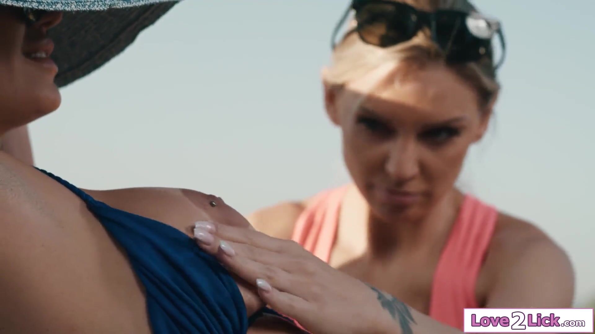 Sunbathing Desiree Dulce mistakenly thinks her lesbian neighbor Kenzie Taylor is her bf.The busty blonde takes her chance and licks the unaware brunette.After the first shock the former straight milf is facesitted and gets her first taste of pussy