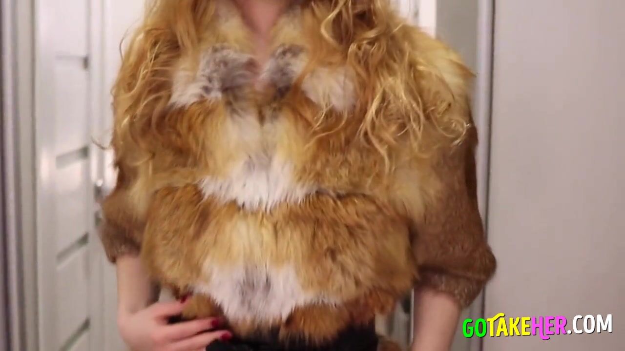 Watch this sexy redhead babe in high heels and a luxury fur coat as she rides a big cock reverse cowgirl style! She moans with pleasure as she orgasms and takes a creampie in her tight pussy. Her small tits and booty are highlighted as she rides, and the POV blowjob will leave you wanting more. This milf knows how to work a cock, so get ready for a furry, muscle-filled adventure!