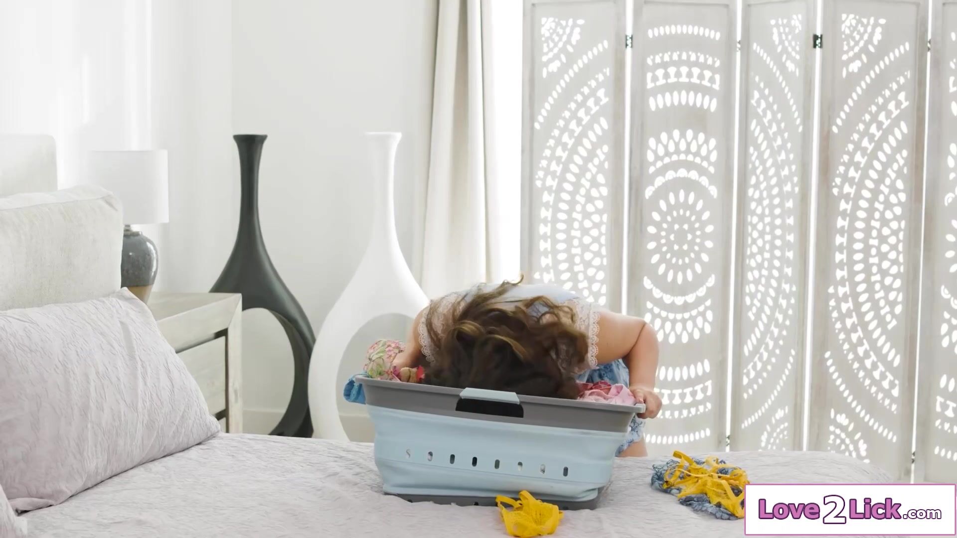 Busty redhead stepmom Lauren Phillips catches her petite stepdaughter Leana Lovings sniffing her panties.The big tits milf lifts up her skirt so she can smell a fresh pair.The ginger sets her pussy on her face and lets her lick her hairy pussy