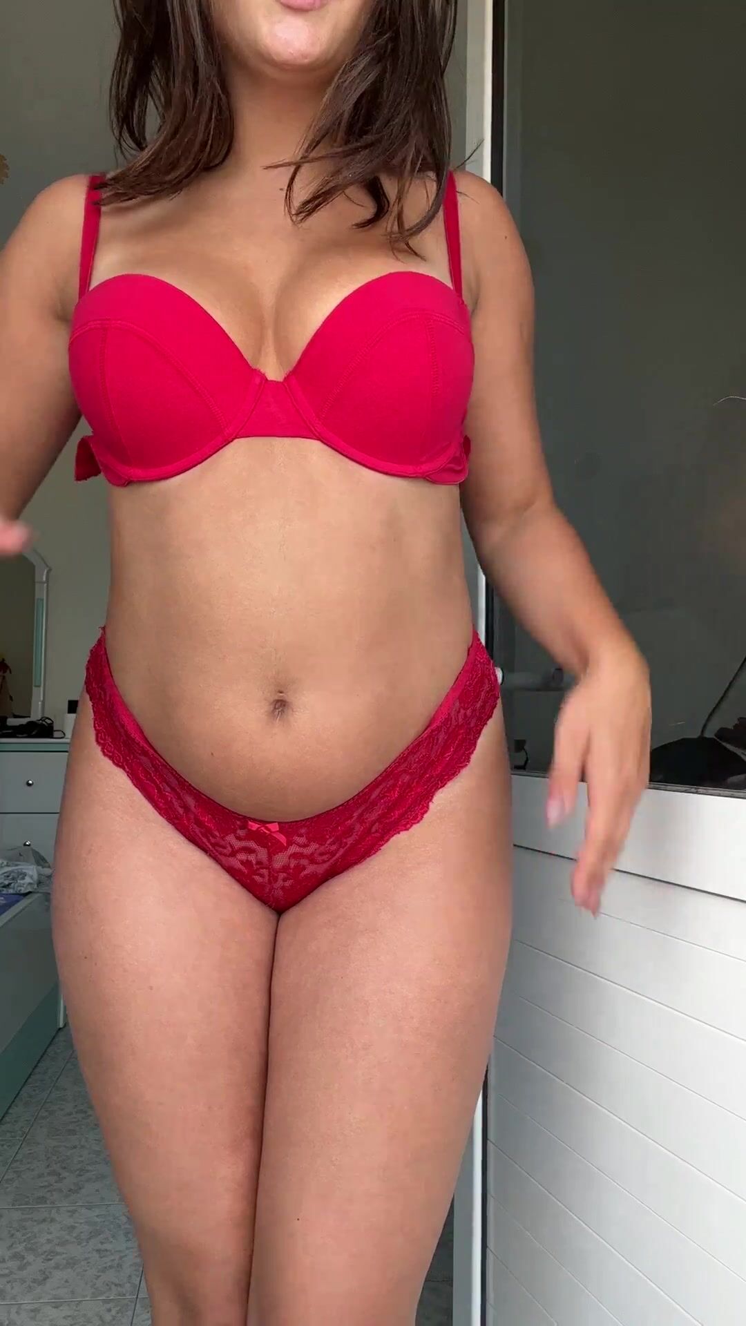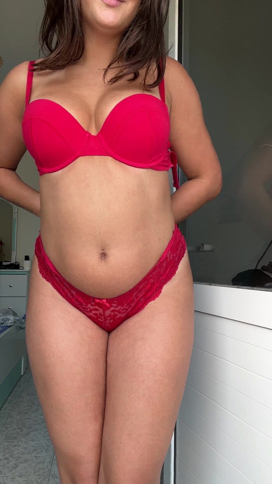 Hotwife in red lingerie spanking her big ass cheeks