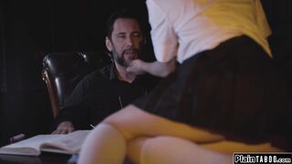 Petite brunette talks to her vicar about her sexual desires and asks if God will forgive if they stray this once.The old perv cant resist and licks the babes pussy.He anal reams her and she gives a deepthroat ass2mouth before being butt fucked again
