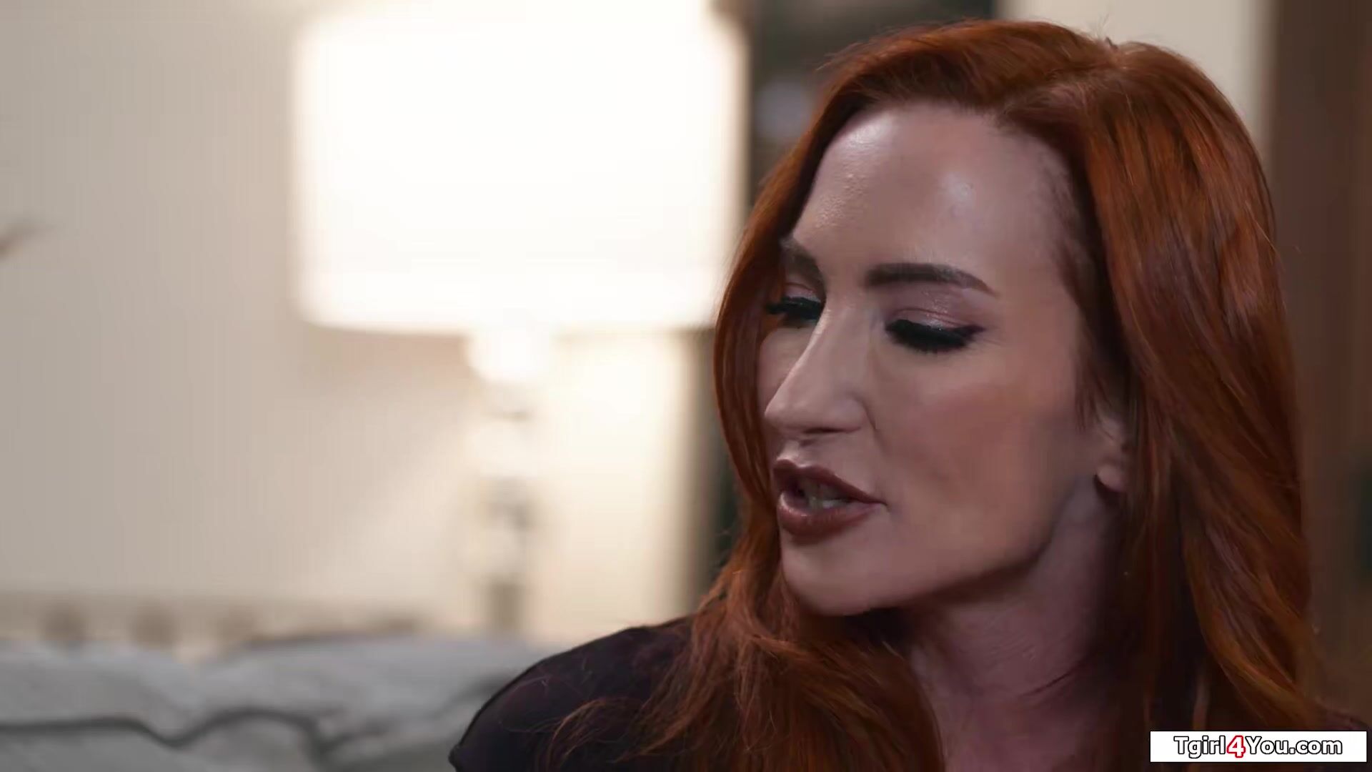 Busty redhead milf Sophia Locke strokes big tits shemale colleague Eva Maxims big tranny cock with toy to test it out.Both are turned on and the latin tgirl is sucked off.The tattooed ginger gets her shaved pussy licked and fucked by the trans babe
