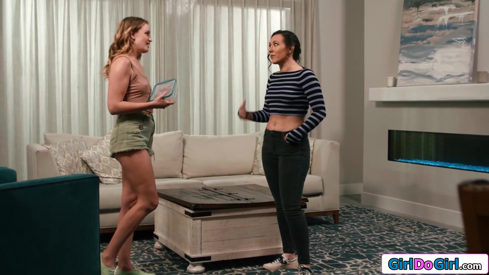 Petite milf Sinn Sage wants to know why her neighbor Charlie Forde one ups her.Turns out she has a thing for her.The small tits brunette makes her move and the lesbians kiss.The blonde licks pussy and gets her snatch footfucked before shes rimmed