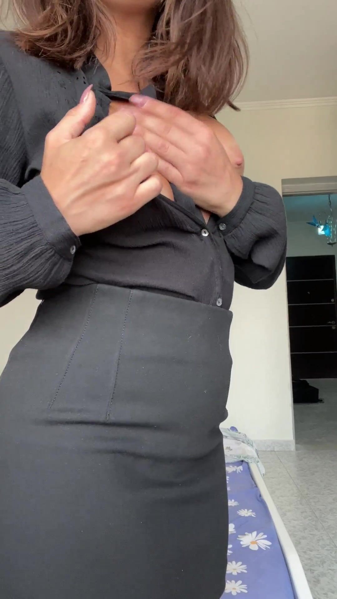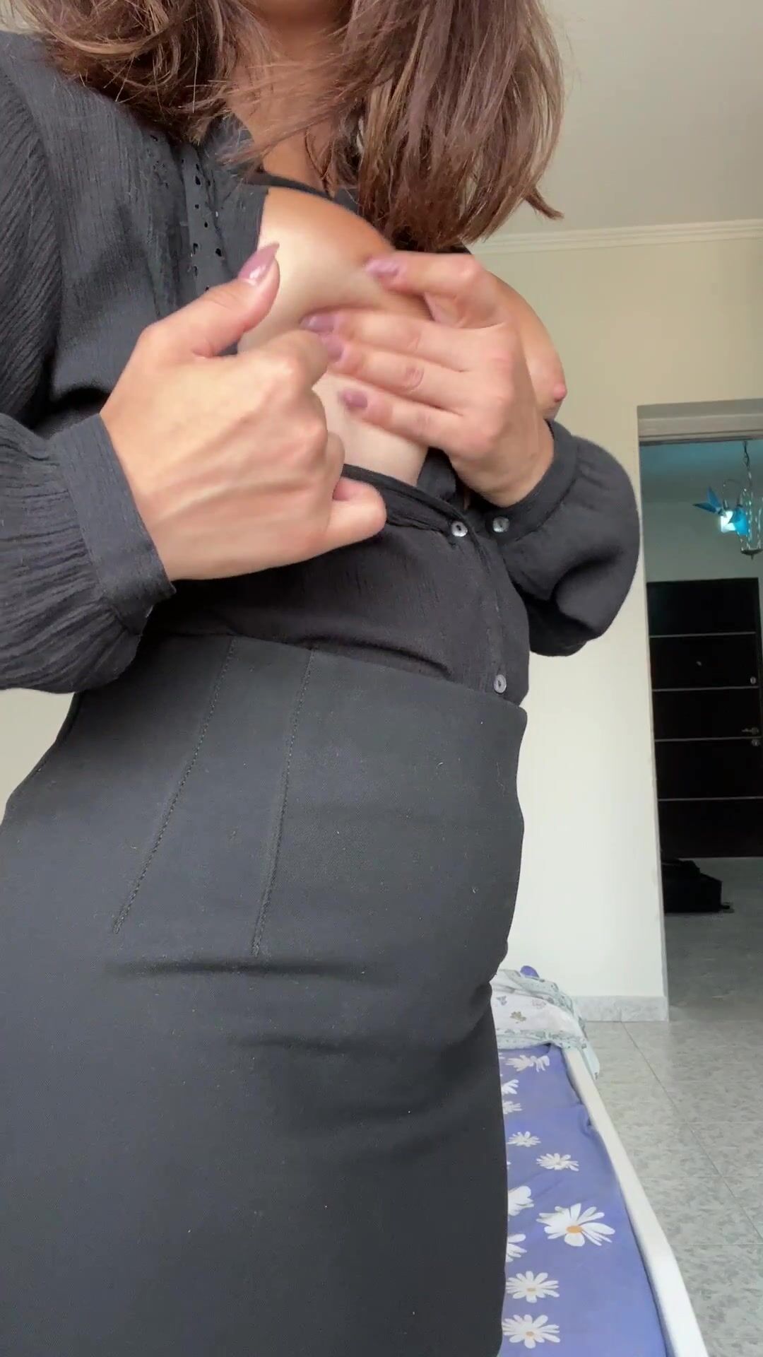 Watch this horny wife who loves to tease by showing and playing her boobs