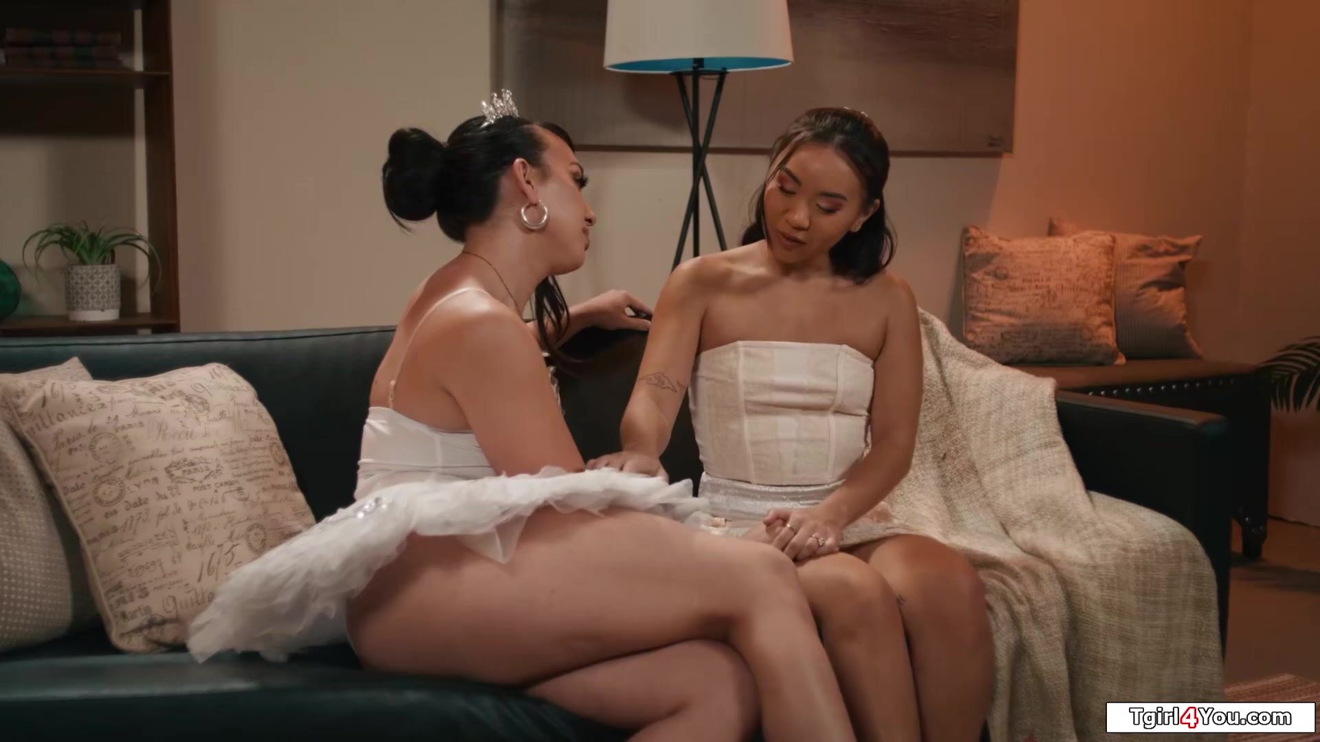 Petite Asian Kimmy Kimm comforts her shemale gf Kasey Kei with a kiss.The small tits oriental tgirl sucks on her girlfriends boobs and licks her hairy pussy.The brunette tranny gets her hard trans cock deepthroated and bangs the babes moist cunt