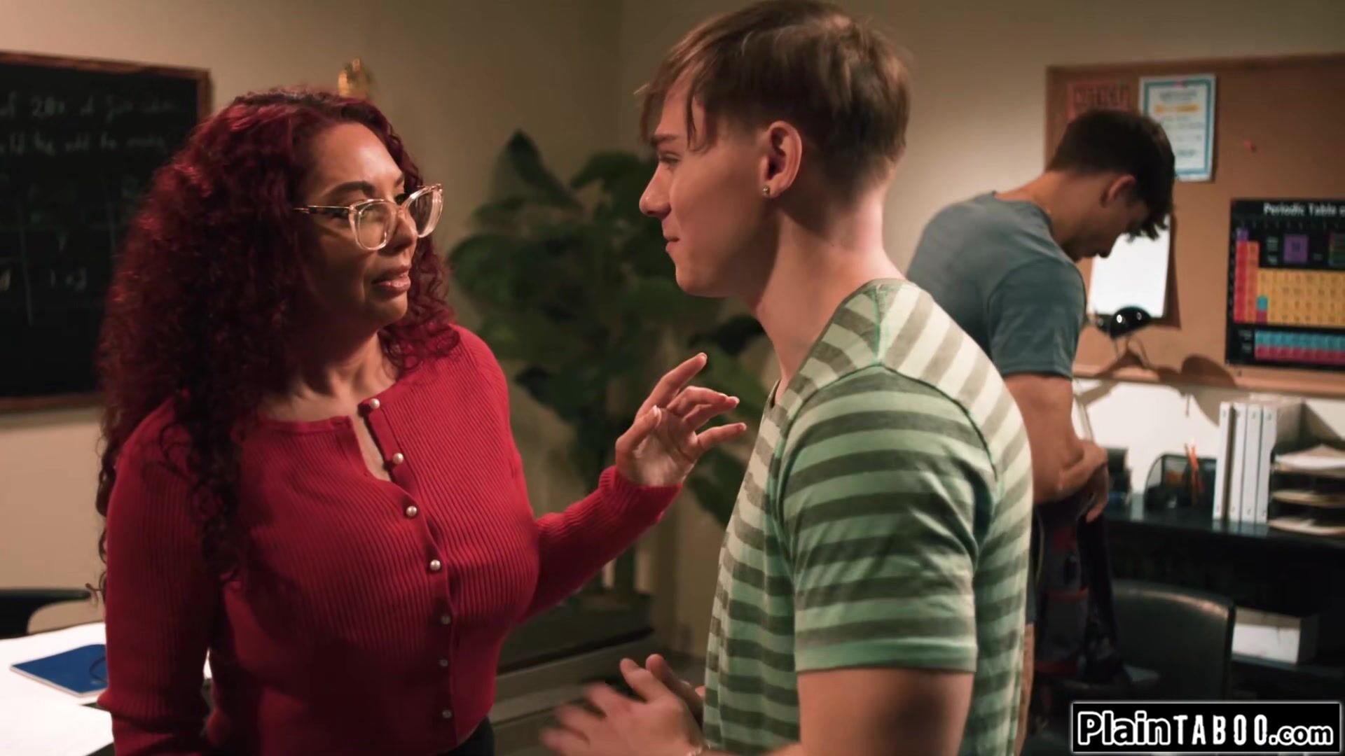 With what we know you have no other option than to get fucked.Petite big tits teacher Kiki Daire sees no way out then to suck off her students big cocks.The horny teens pussy and anal fuck the busty redhead milf before double penetrating her