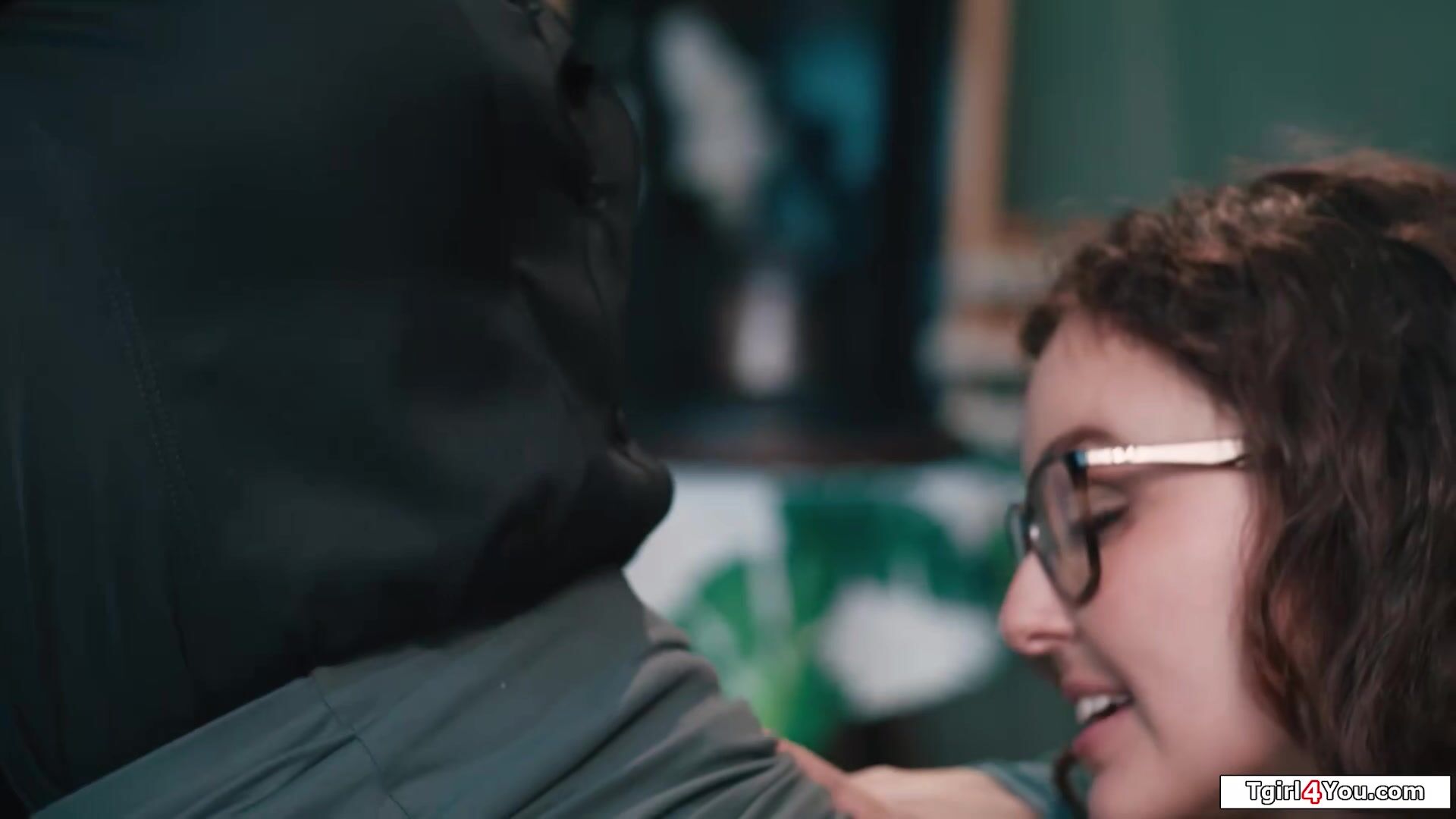 Busty shemale Emma Rose surprised to see her petite college gf Leana Lovings in her cafe.The tgirl closes shop and and kisses the brunette.The big tits redhead trans gets her tranny dick sucked off and licks shaved pussy before banging her