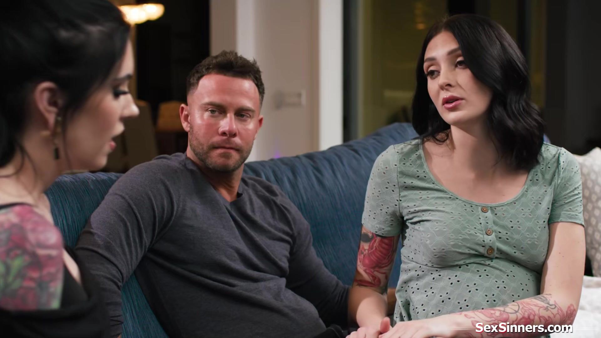 Prenatal instructor Anna Deville shows couple how to do it.The guy touches her sexually and they come clean.Charlotte Sins wants her to fuck her hubby.The petite brunette deepthroats his cock and is pussy licked.The busty wife watches her get banged