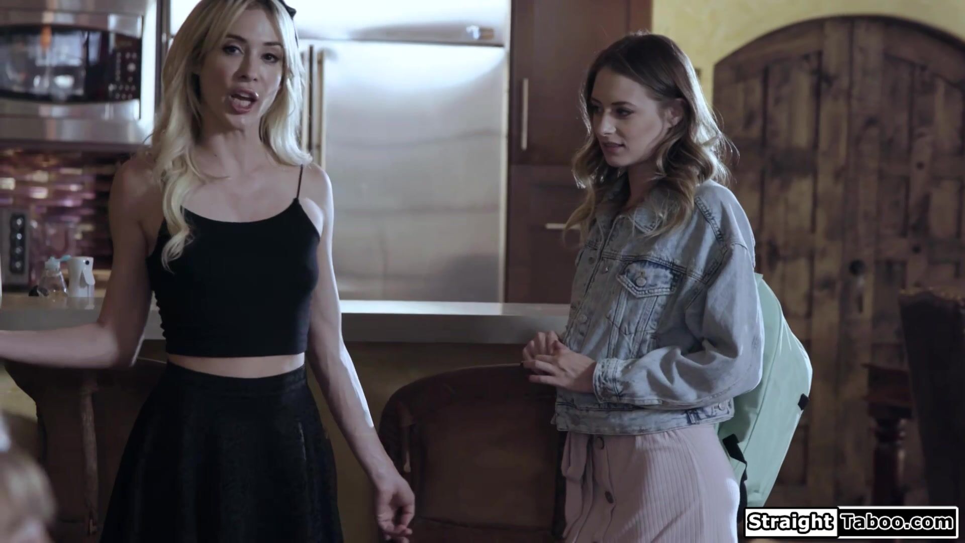 Teen Kyler Quinn arrives at her foster home and is greeted by Aiden Ashley.The blonde makes clear she has to follow her rules and therefor lick her shaved pussy ifo the rest.She fingered when busty milf Rachael Cavalli walks in and takes over