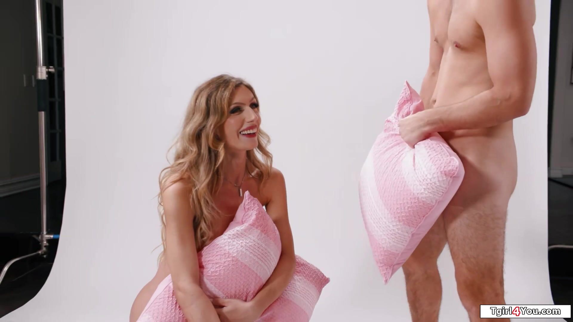 Busty shemale Jade Venus and colleague model are turned on after their nude work.The big tits tgirl sucks his big cock and gets her own tranny dick deepthroated.The blonde trans gets rimmed and jerks off her boner while shes anal barebacked