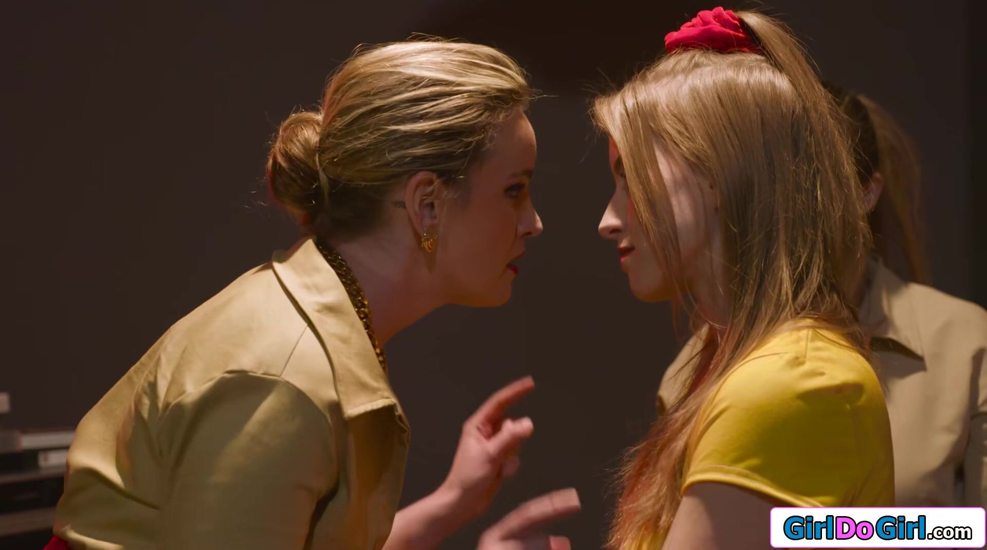 Busty teen Octavia Redd is taken apart and will be put to the test by dominant milf guards Codi Vore and Cami Strella.She gets her nipples squeezed while licked by the latin.Big tits Codi facefucks the babe with her hairy pussy and strapon fucks her
