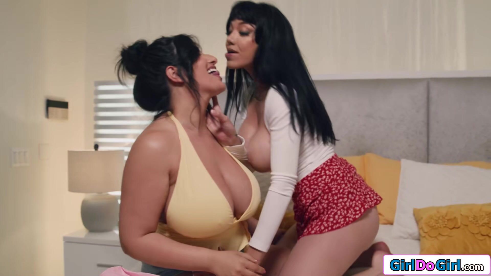 Chubby Sarah Arabic oils up her busty milf gf Little Pucks big boobs.The latina takes over and fingers the big tit brunettes shaved pussy.The lesbian girlfriends gets into a 69 position and eat each other out.Sarah puts her gfs pussy up and licks her