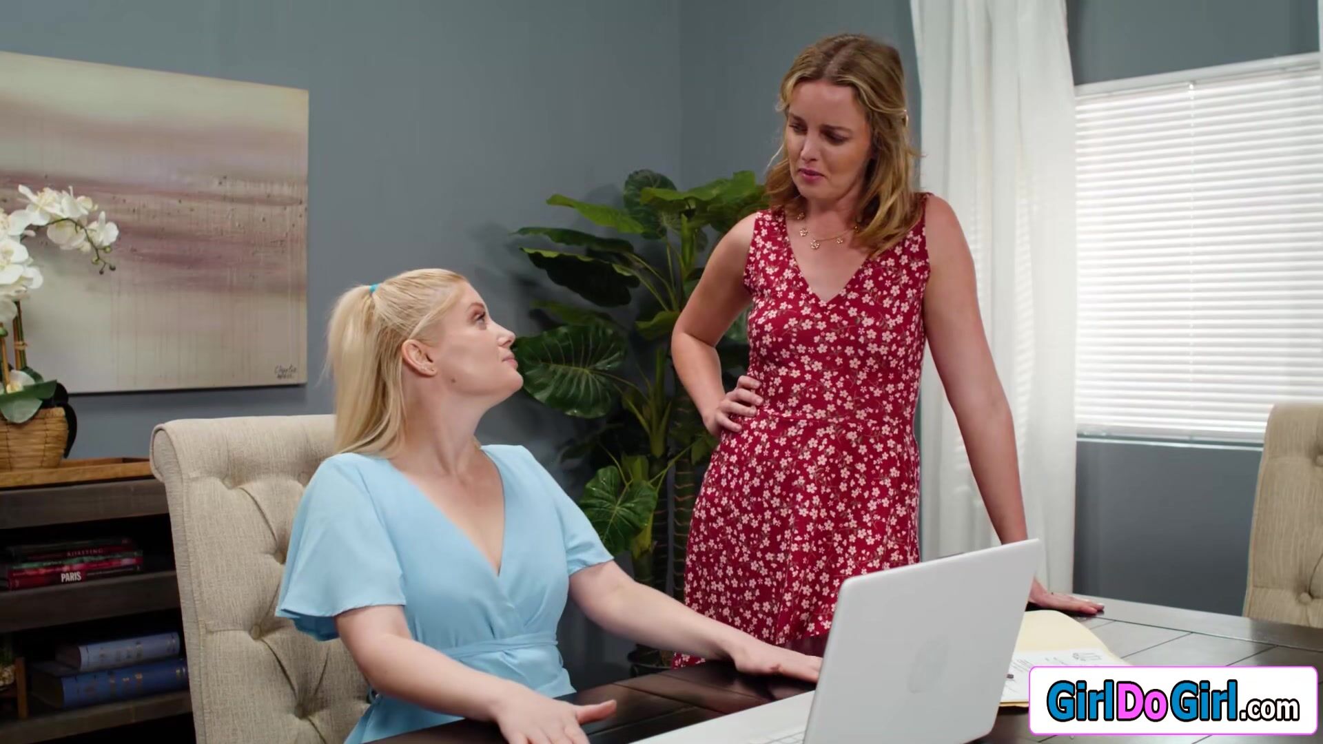 Stepmom Charlotte Stokely and her stepdaughter Khloe Kingsley have a secret affair.The milf is pussy licked under the table right under her wife Charlie Fordes nose.The lesbians kiss and the small tits petite cougar eats out the teens hairy snatch