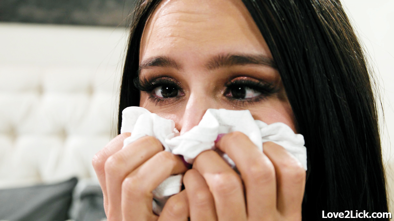 Busty stepmom Shay Sights gives her stepdaughter Eliza Ibarra a weeks worth of used panties to sniff to teach her a lesson.It doesnt help so she lets her smell them while she still wears them.The latina rims the milf while panty stuffing her pussy