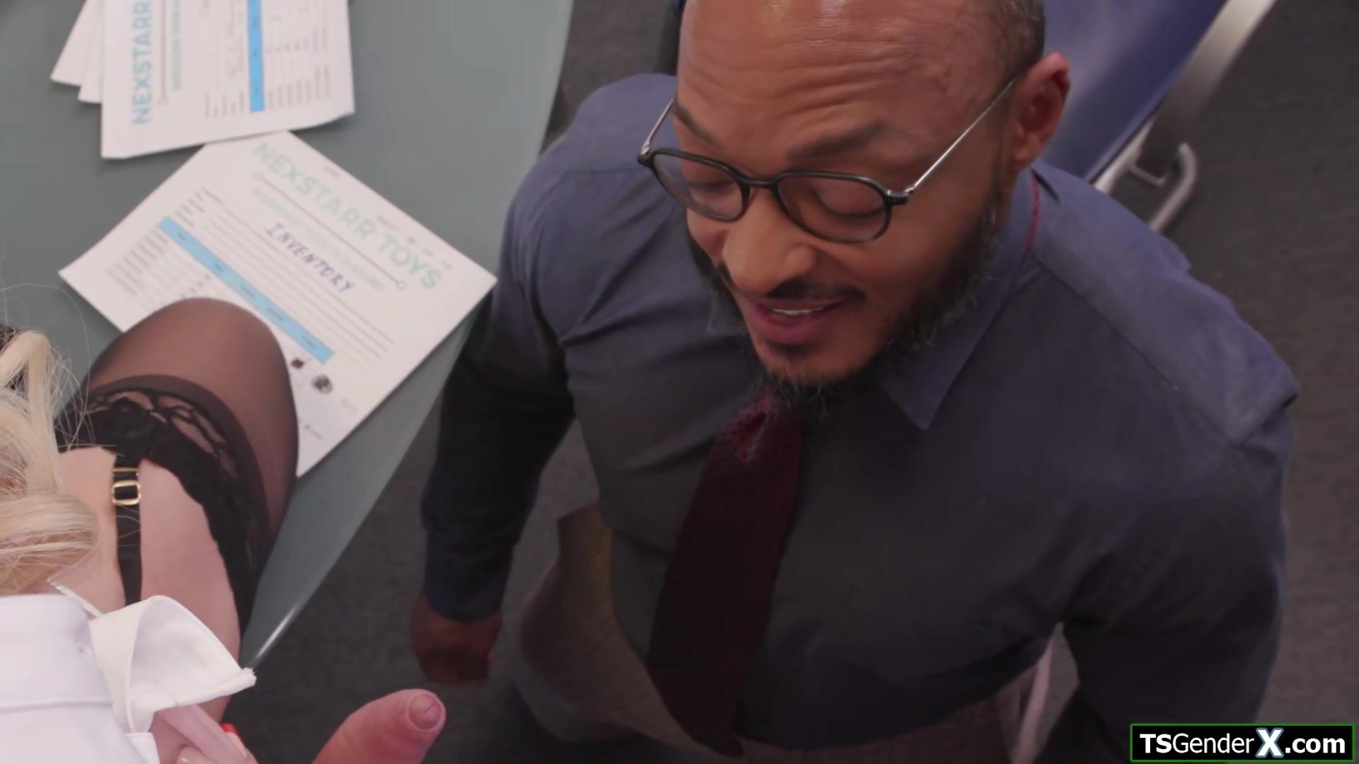 On your knees and suck your big tits shemale boss uncut cock.Busty tattooed tgirl Gracie Jane deepthroat facefucks her employee with her hard tranny dick.The blonde trans gives a double handjob and sucks off his bbc.The ts is anal barebacked by him