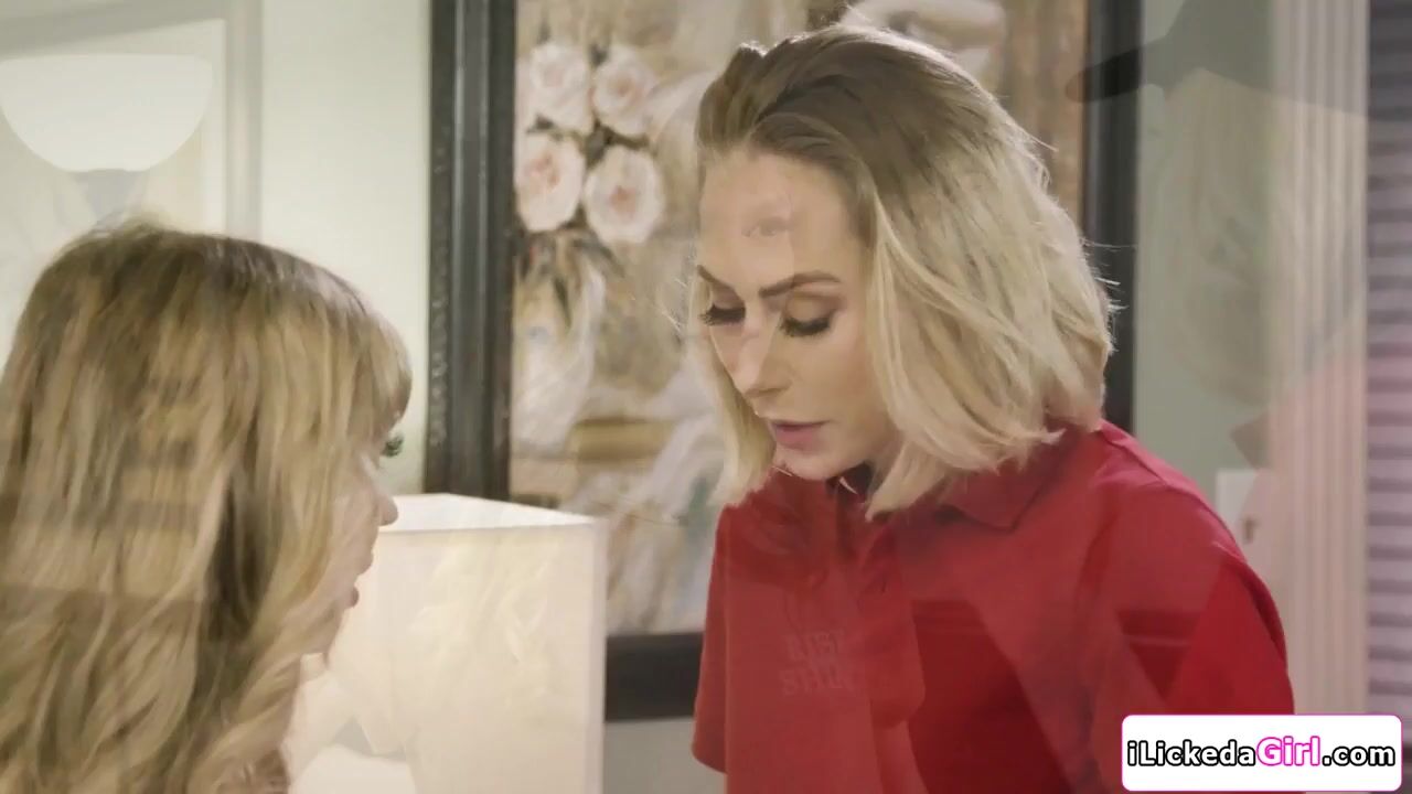 Mackenzie Moss is so happy after knowing her lesbian girlfriend Carter Cruise is preparing a ring. Carter kissed her intensely, she removes her dress and sucks her small tits. Mackenzie spreads her legs as her blonde girlfriend eats her pussy.