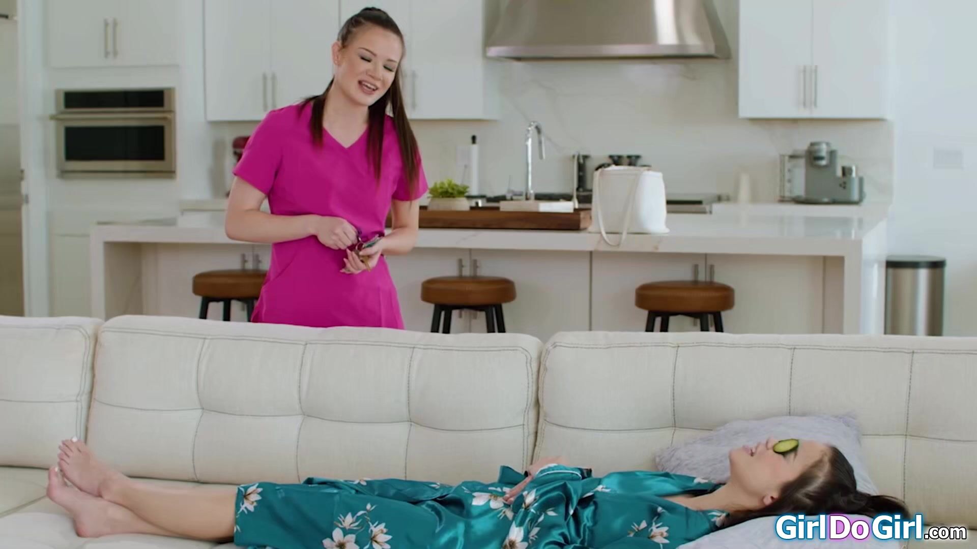How about you snack on this shaved pussy you know its tasty.Busty Alison Rey knows she shouldnt but cant resist to lick unaware Angelina Moons snatch.She gives oral and kisses her when the asian finds out.Still horny they finish whats started
