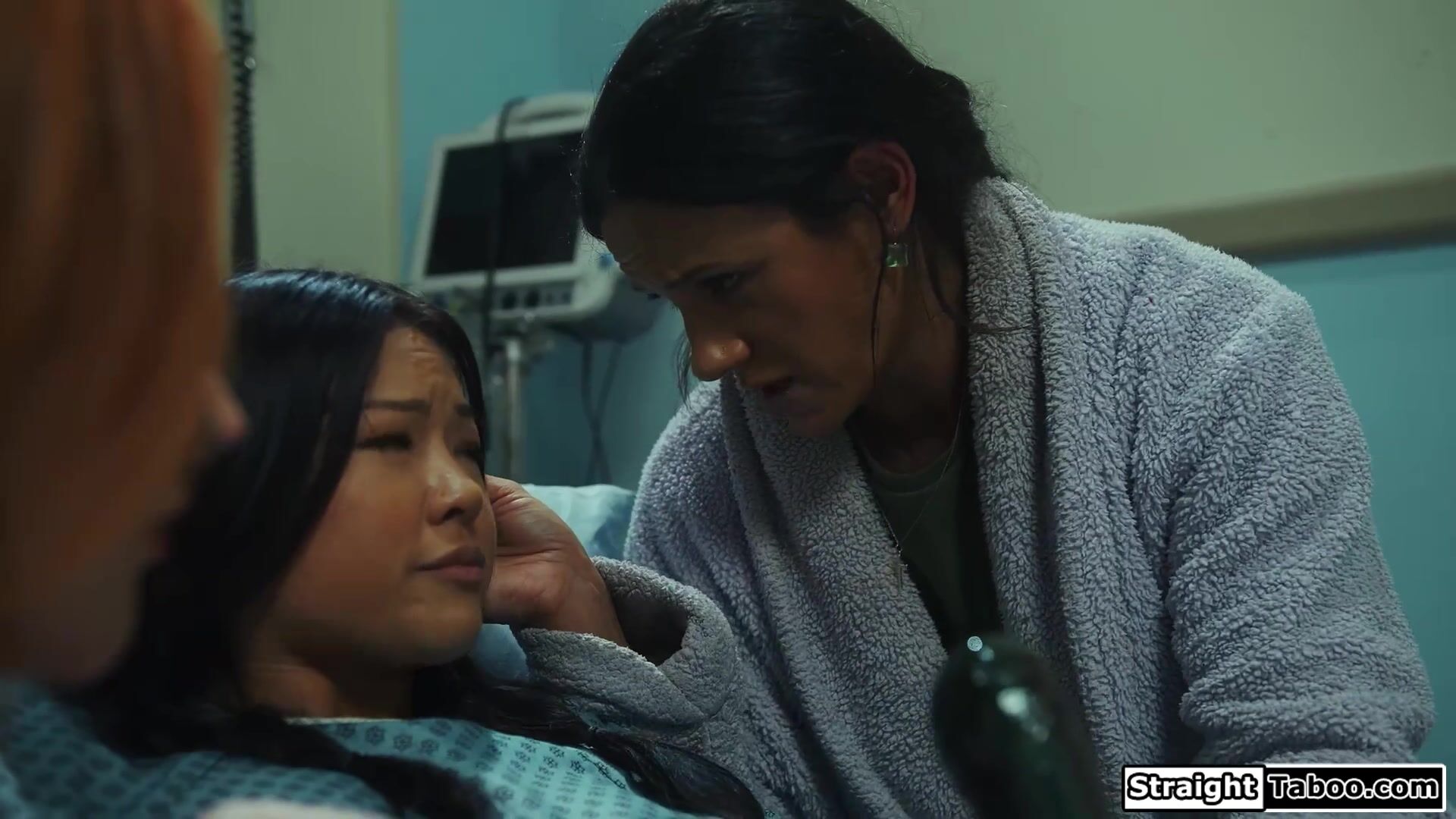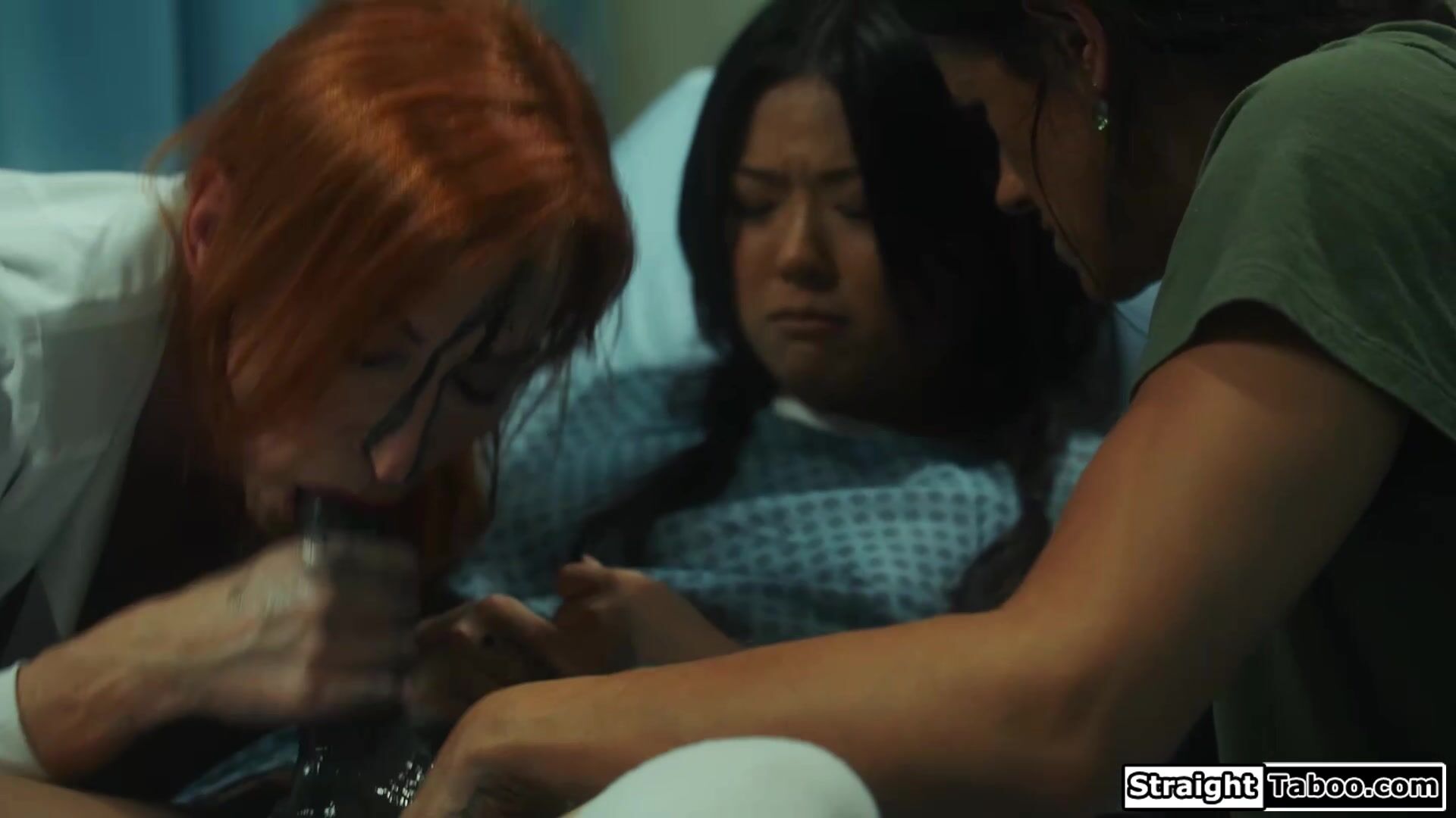Asian Lulu Chu and stepmom Penny Barber rush to the emergency with her strange growth between her legs.Dr Sophia Lock suggest unleashing the tension.The big tits milfs start sucking the alien dick.The tattooed redhead fucks it as a last resort