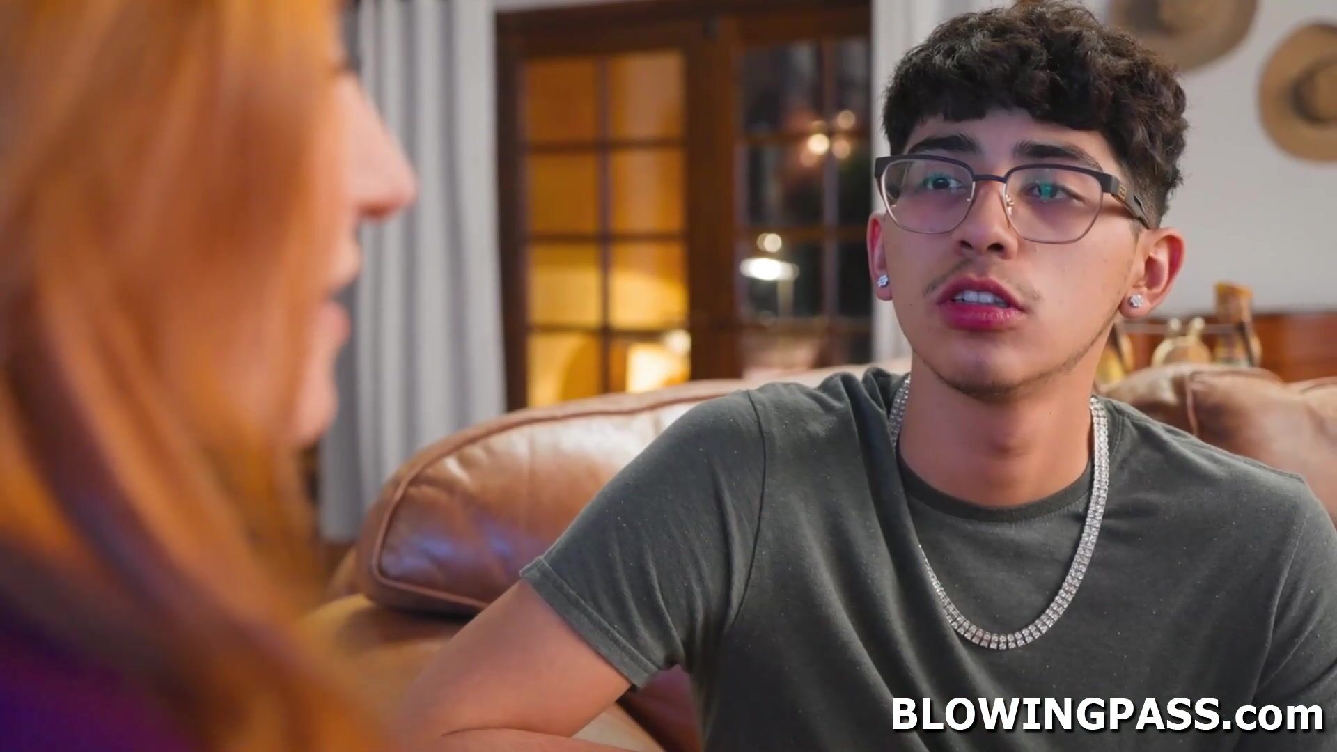 Alone with her stepson,big tits milf Sophia Locke craves for some blowjob.Shes teasing the guy by letting him grab and suck on her big boobs.The redhead stepmom starts sucking and gagging on his big cock,even goes hard by letting him face fuck her.