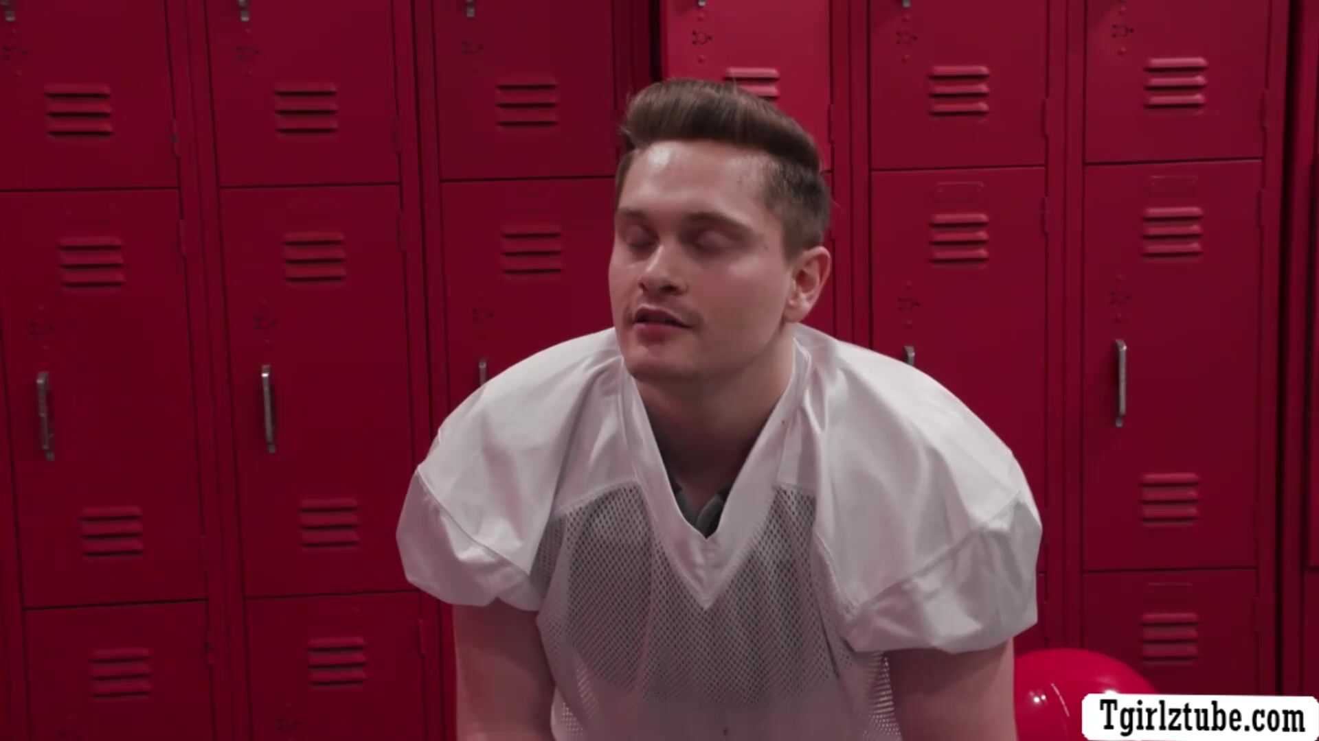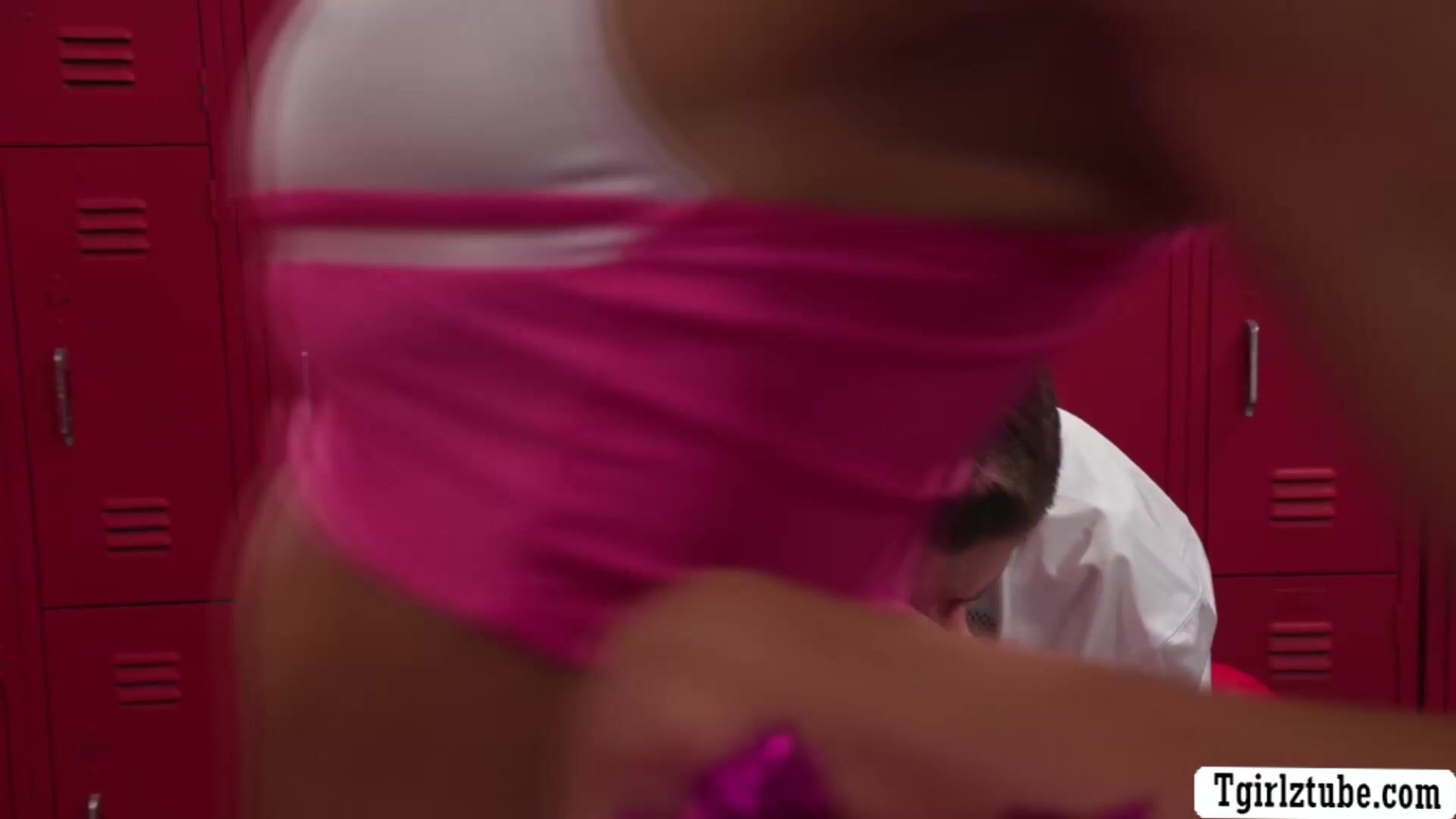 Ebony shemale cheers up her crush after losing the game in the locker room.She starts giving him a blowjob passionately and after that,he bareback fucks her tight asshole so hard.Go to Tgirlztube.com for the full video.