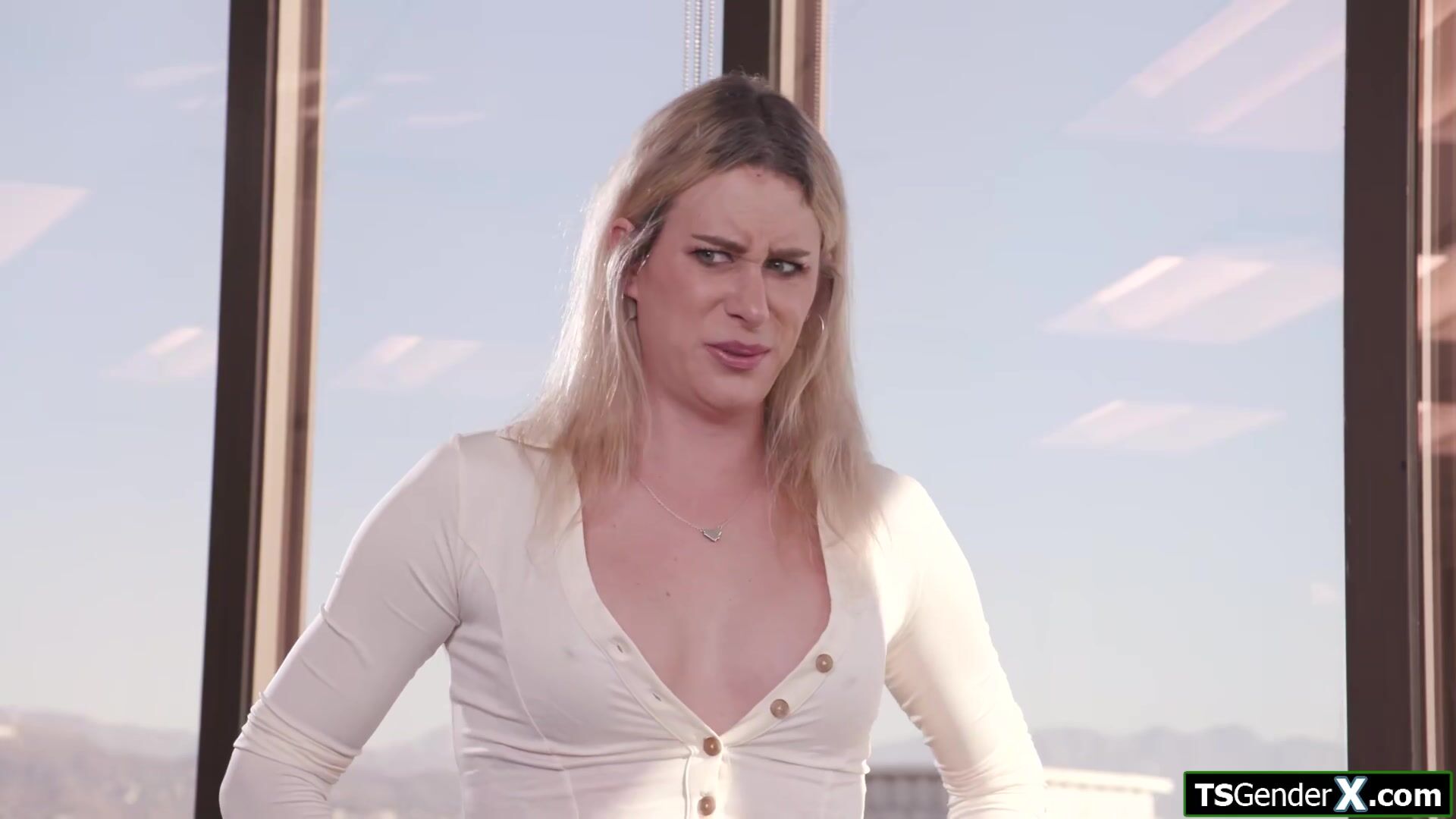 Im rubbing my dick ifo my tgirl boss Nikki Vicious and she gets hard when she sees how big it is.The shemale lets him suck her uncut tranny boner before she deepthroats her employees big cock.The blonde trans bends over for a doggystyle anal bareback