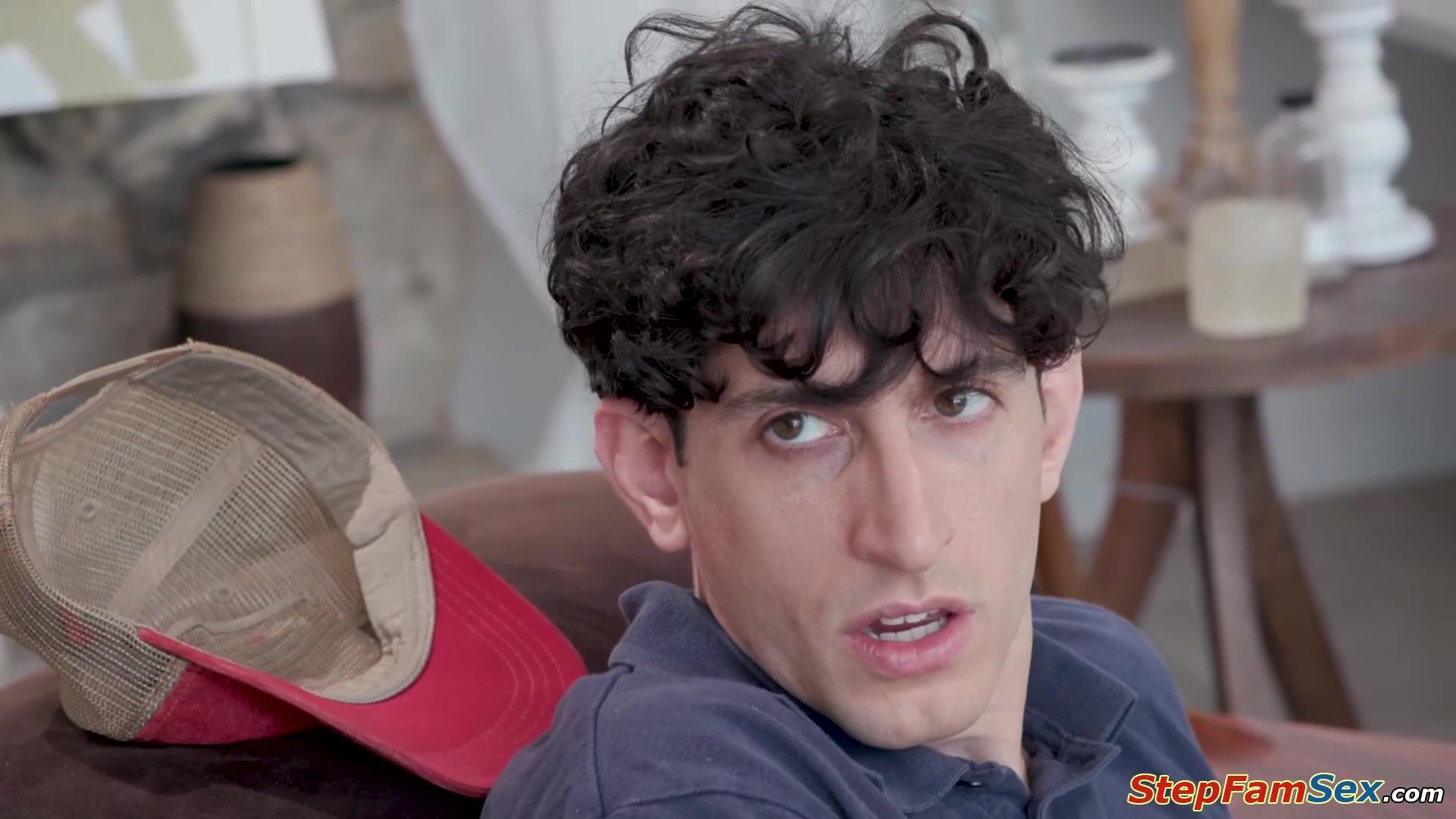 Busty redhead stepmom Lauren Phillips walks in on her stepson jerking his big cock.The big tits milf grabs his boner and gives him a handjob.The ginger tittyfucks him before sucking him off.All hard and horny the guy bangs his stepmommys hairy pussy