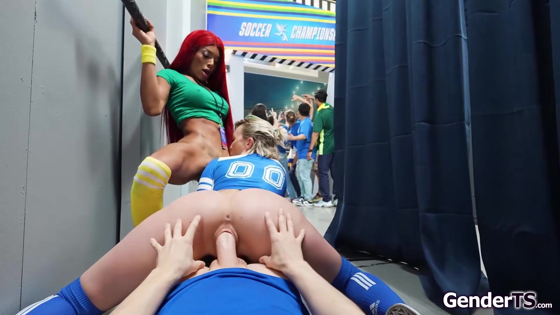 Busty trans Lola Morena sucks cock at the security gate.Her colleague Adira Allure works the row away while the shemale is barebacked in public.The tgirl is sucked by the blonde while she anal rides before she sets her pussy on top of her tranny dick