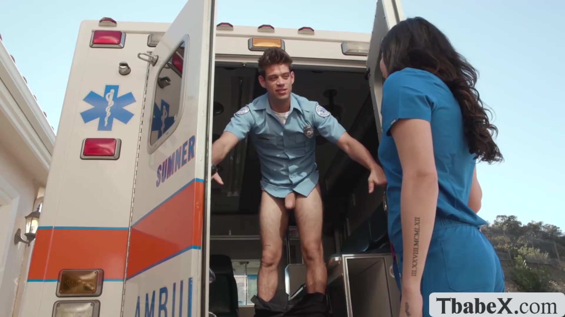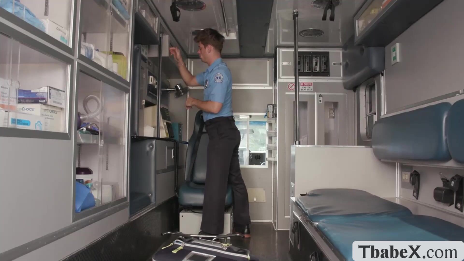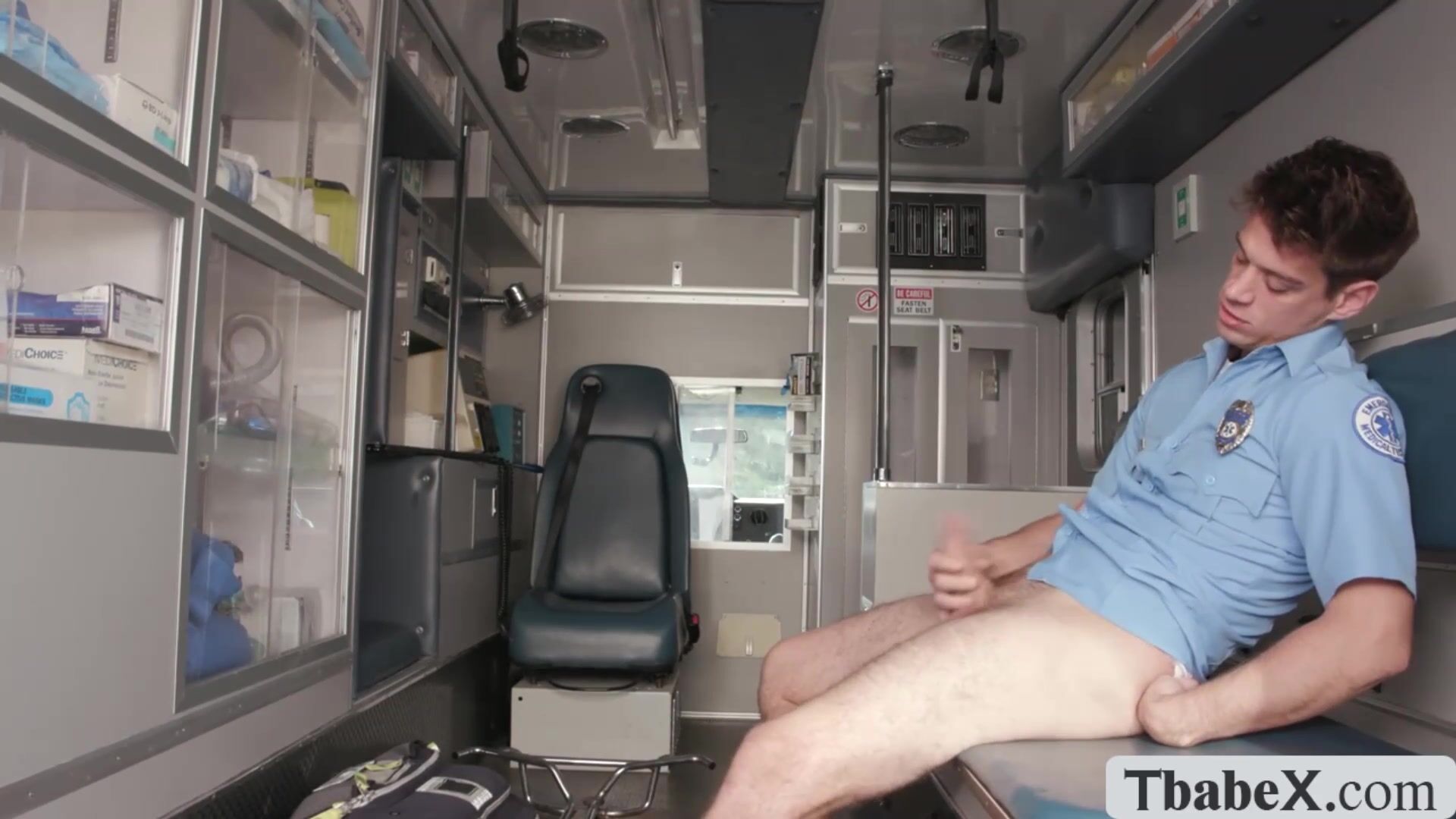 Caught our ambulance driver masturbating on the patient bed.Instead of getting mad,I give him a extra hand and lets him bareback fuck my tight wet ass so deep and hard.Go to Tbabex.com for the full video of this.