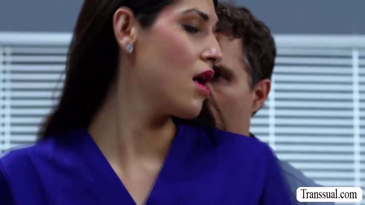 Horny MILF patient is masturbating her pussy using vibrator toy.After that,she caught the hospital nurse having sex and instead of getting mad,she joins them and go to Transsual.com for the full video of this and more related.