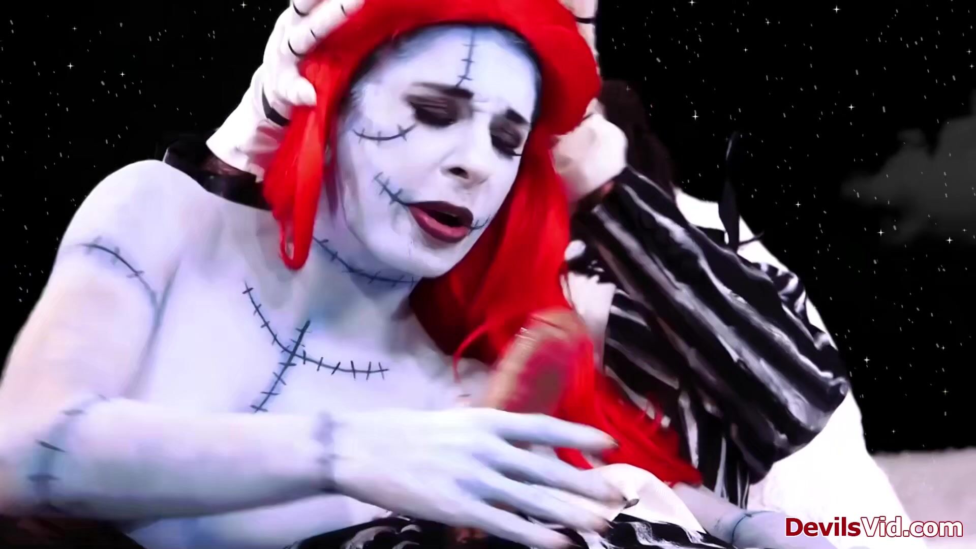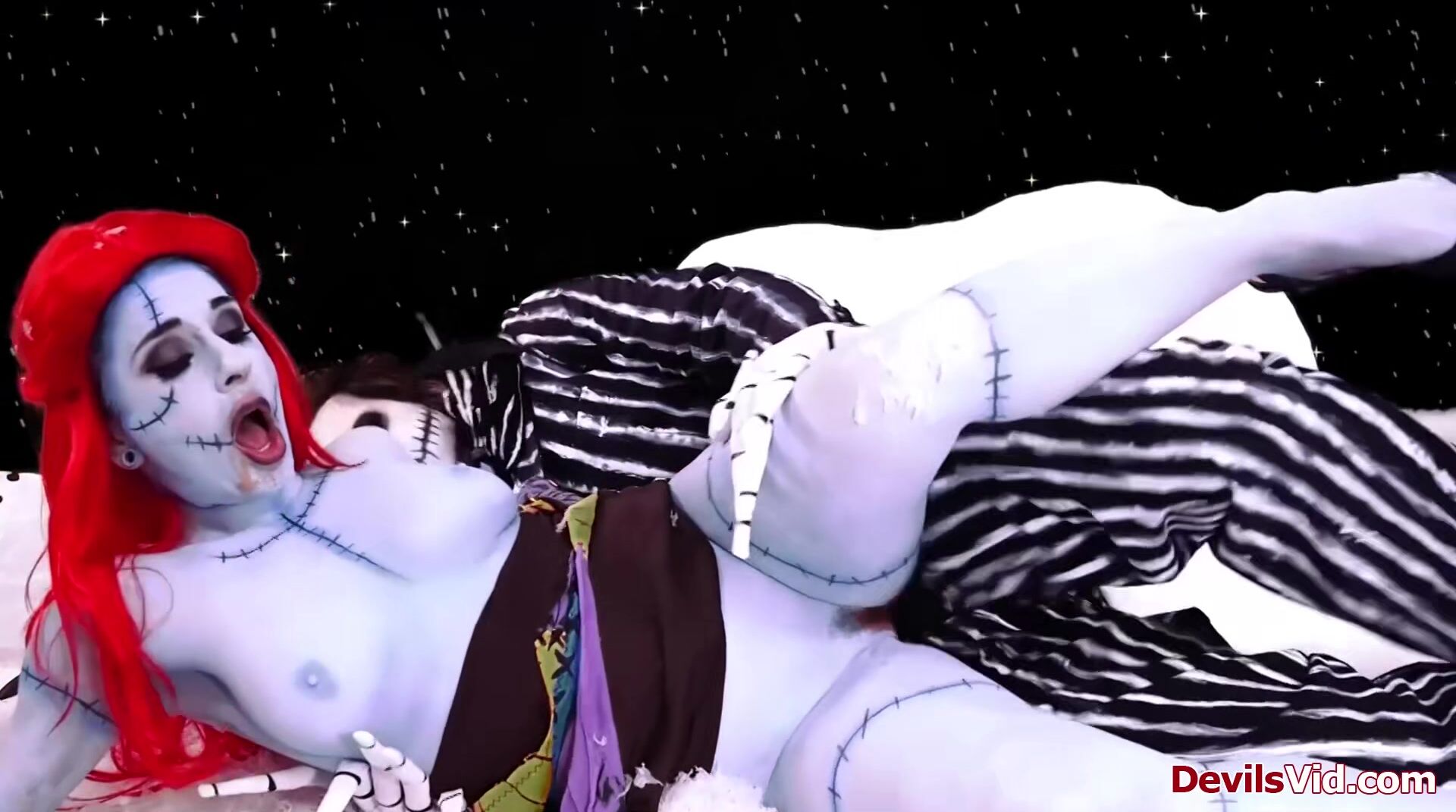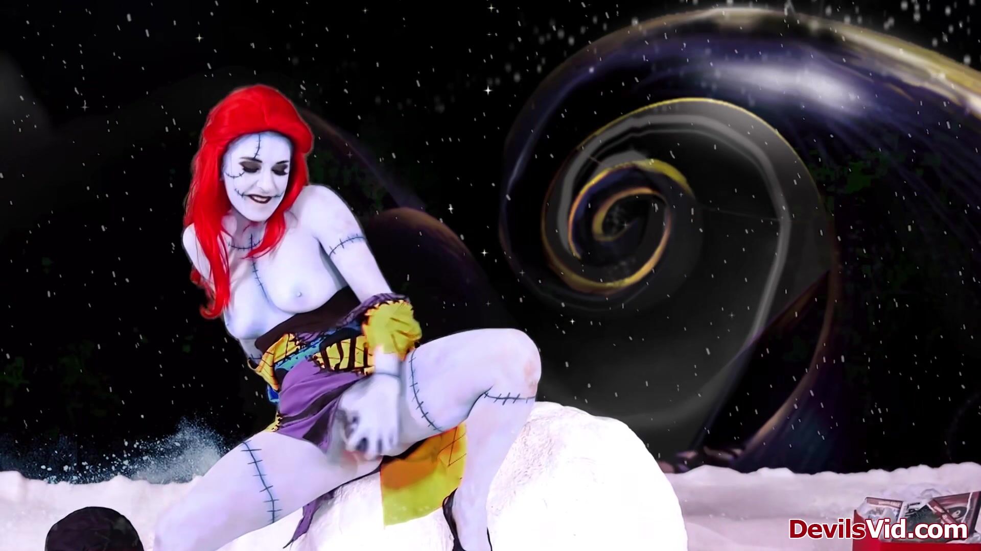 Joanna Angel features in A nightmare before Christmas XXX parody.As Sally is toying her pussy Jack shows up.He shows her his Christmas package is still working.The big tits redhead deepthroats his big cock before he fills her wet snatch with it